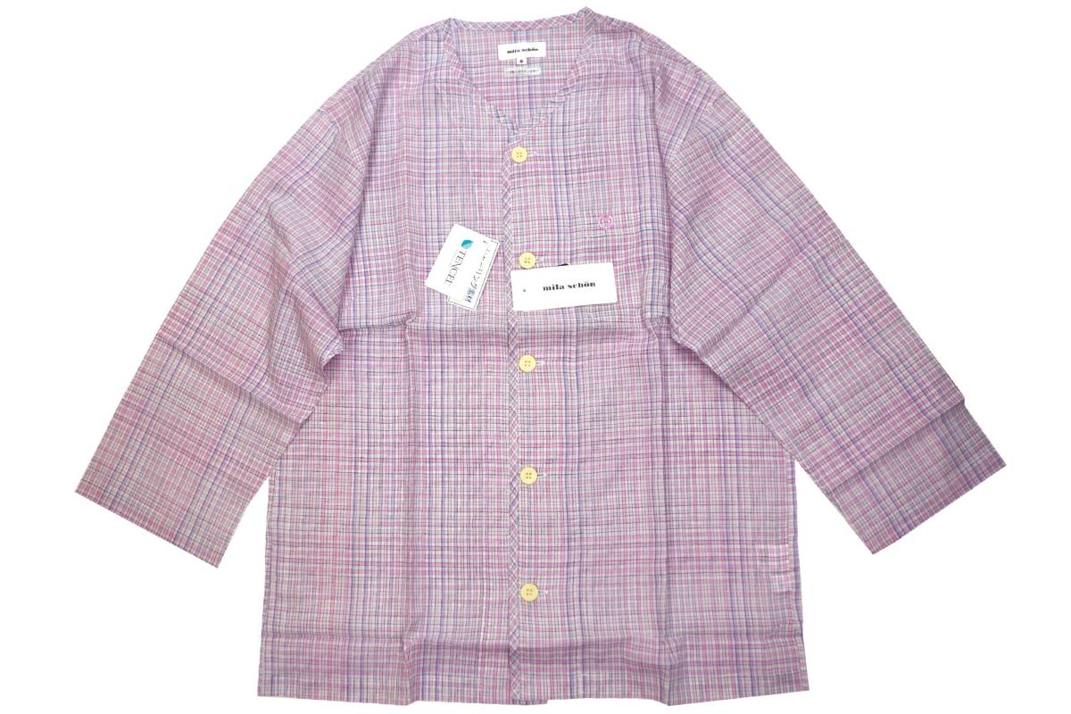 ■ミラショーン mila schonの男性用、V首八分袖&八分丈パンツパジャマ、新品です。サイズはM、チェスト88-96cm、身長165-175cm、ウエスト76-84cm。パンツは前開き。胸ポケット付き、ロゴマークの刺繍入り。素材は綿55%・テンセル44%・ポリウレタン1%。軽くて涼しいシャーリング素材、主に春・夏シーズンでお使いいただける生地感です。色は薄いピンク系の感じです。正規ライセンス会社扱い品の日本製です。