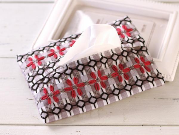 ◆毎日をポップに彩るギンガムステッチ小物◆キット◆ティッシュケース◆刺繍◆レトロ