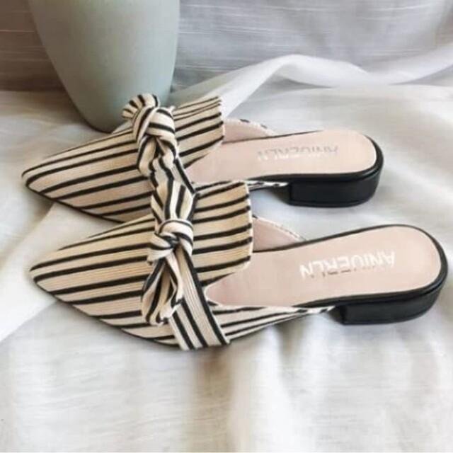 #ミュール #サンダル #レディース #ヒール #リボン付き #ローヒール #太ヒール #幅広 #黒 #サボ #スリッパ #ポインテッドトゥ #サンダル #かかとなし #オフィス #美脚パンプス #歩きやすい#おしゃれ #前ふさがり
