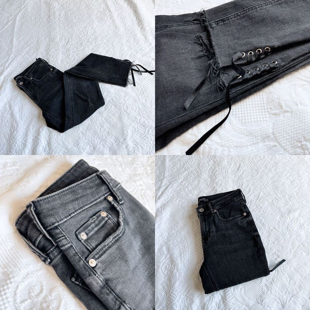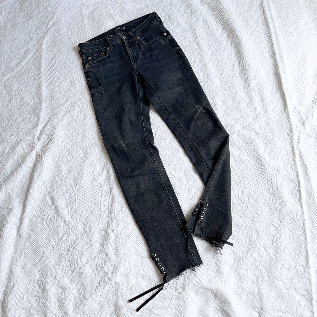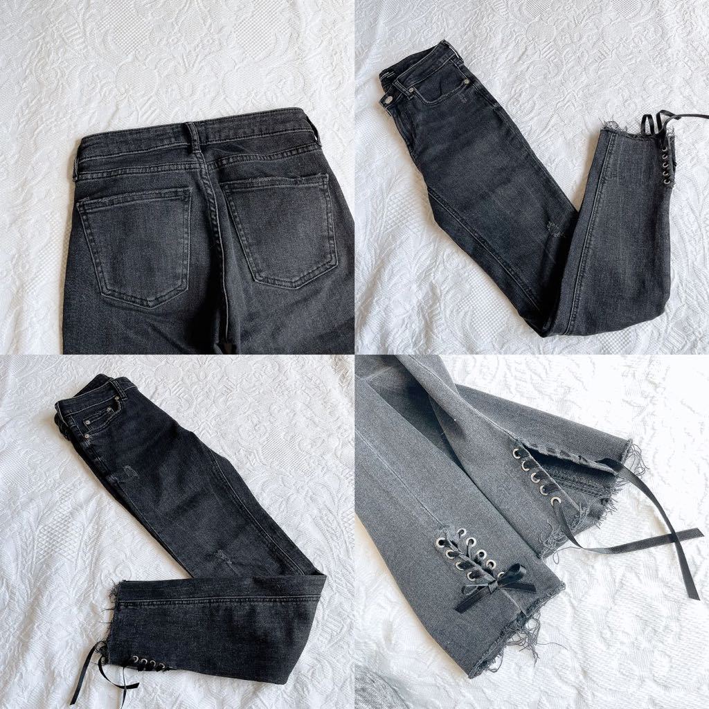 ストレッチ スリット入り スキニーパンツ レースアップ リボン 美ライン ストレッチ レディース ジーンズ