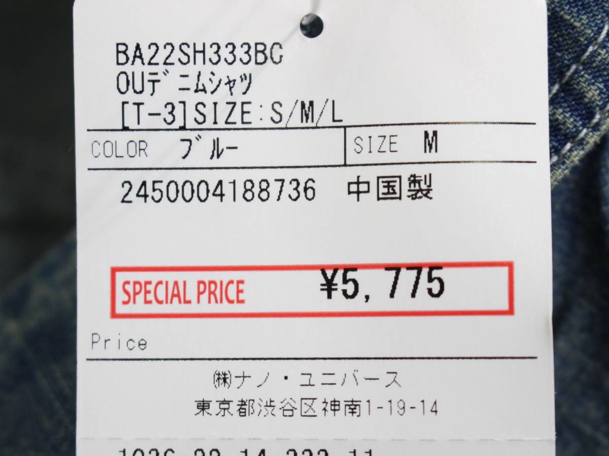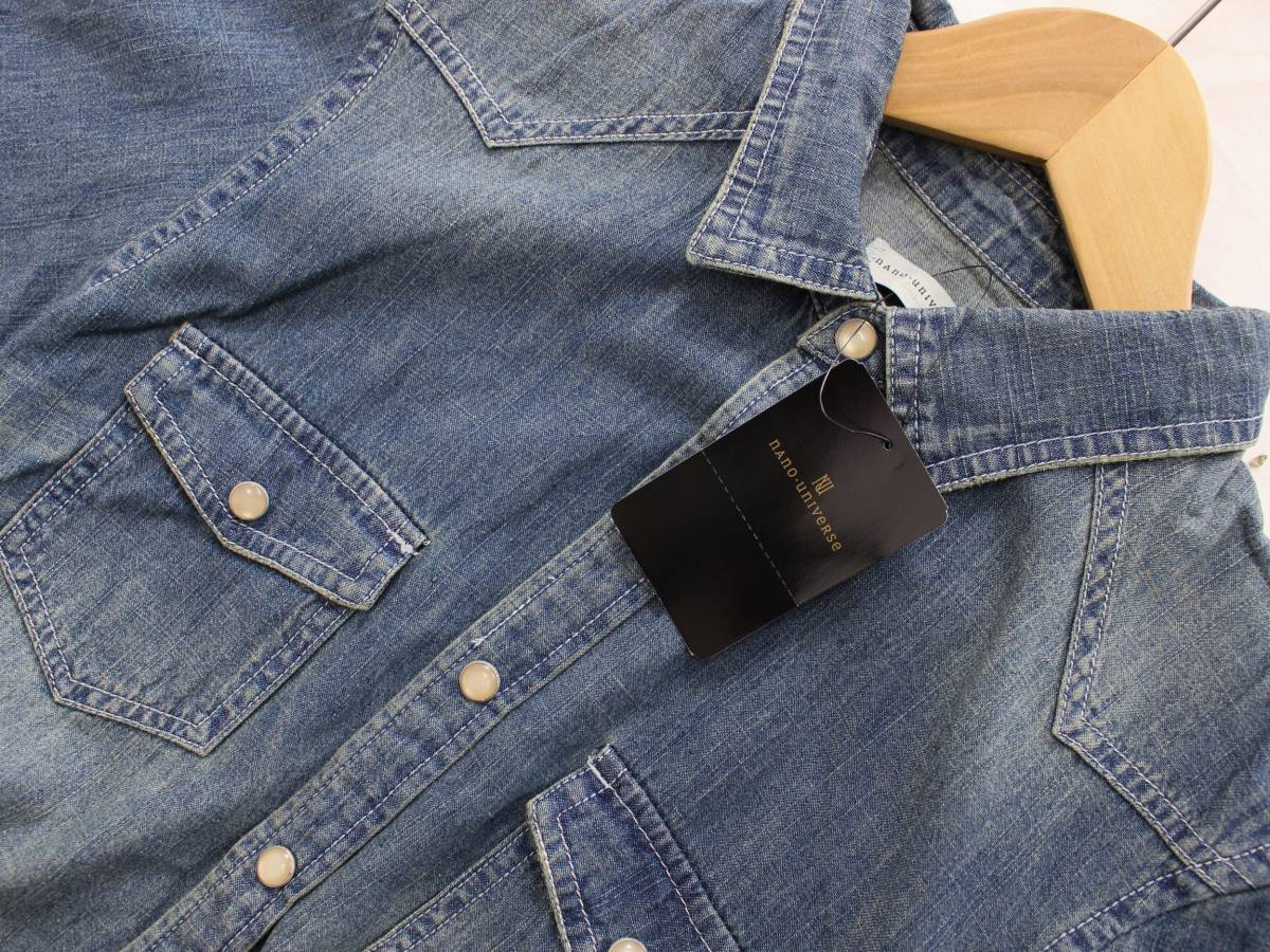 新品*nano universeナノユニバース*半袖 デニムシャツ ブルー M【558-7594】
