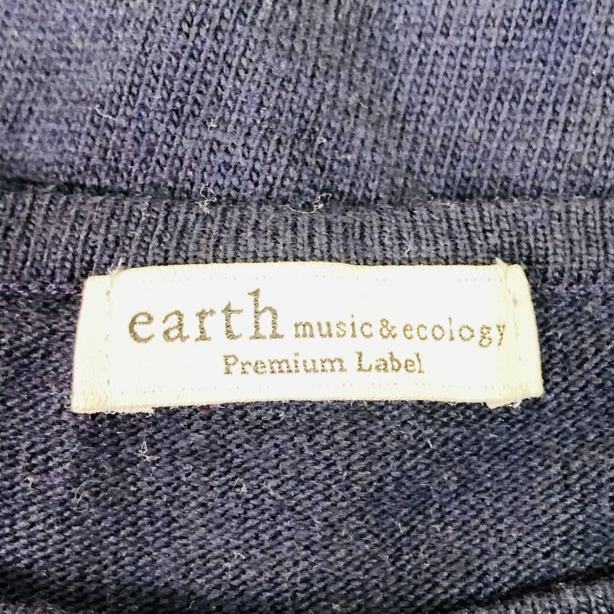 a01406 美品 earth music&ecology アース レディース 長袖ニット 薄手 丸首 F 紺 花刺繍 上品 万能 シンプル フェミニンフローラルスタイル