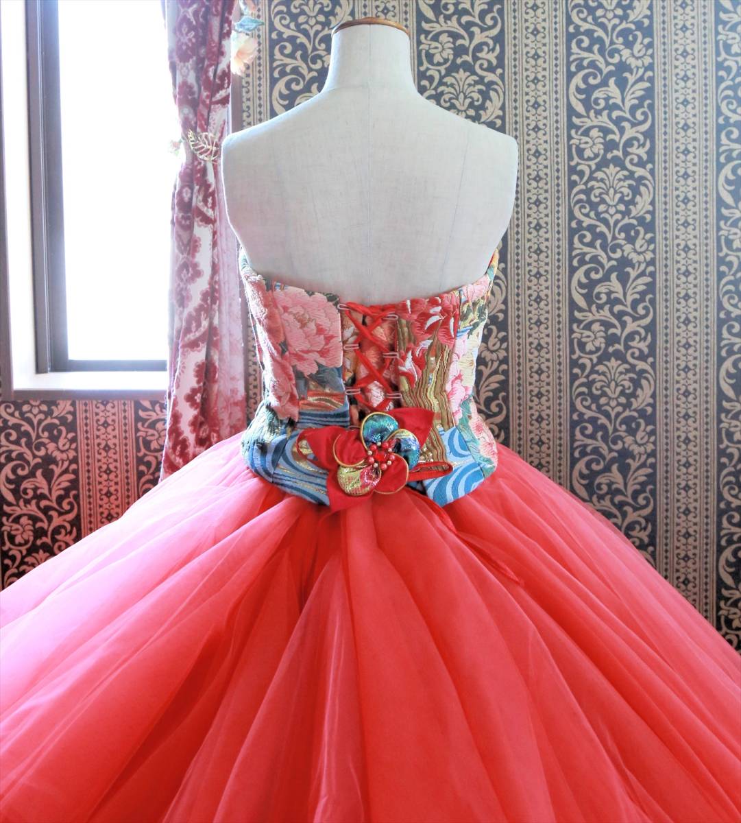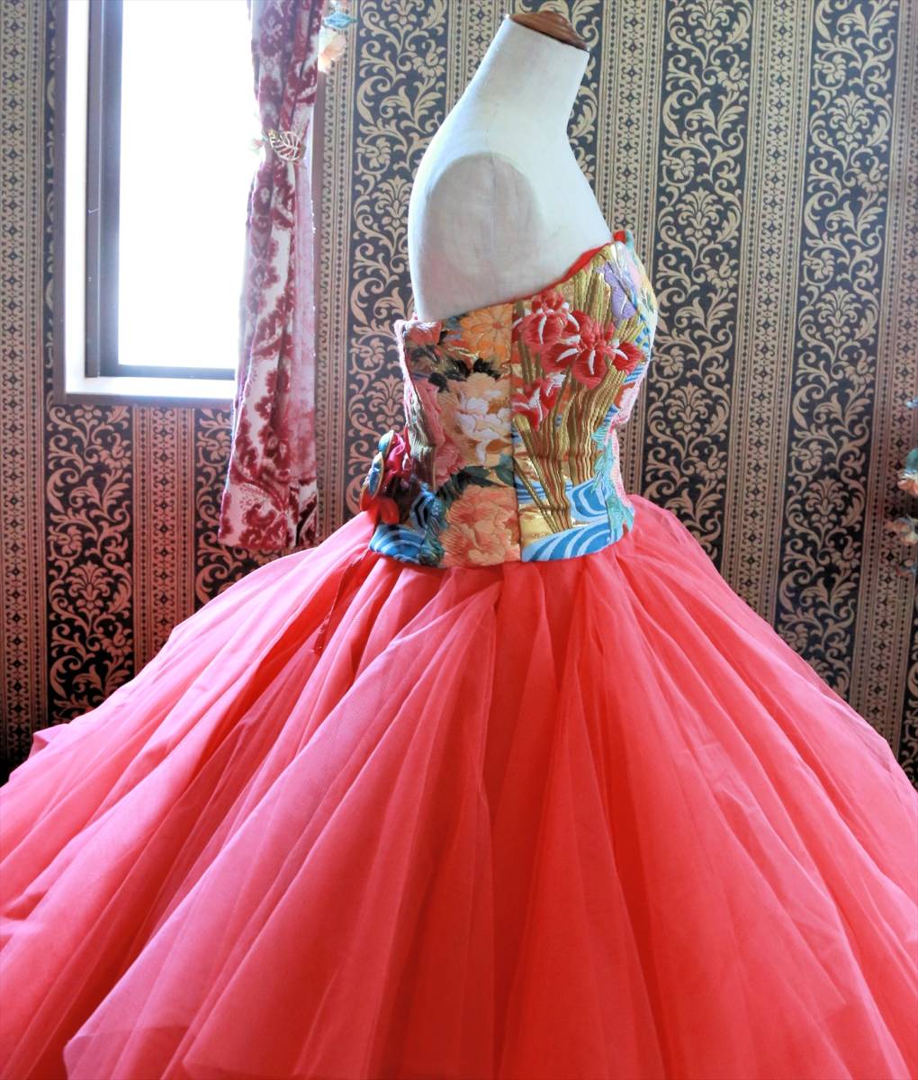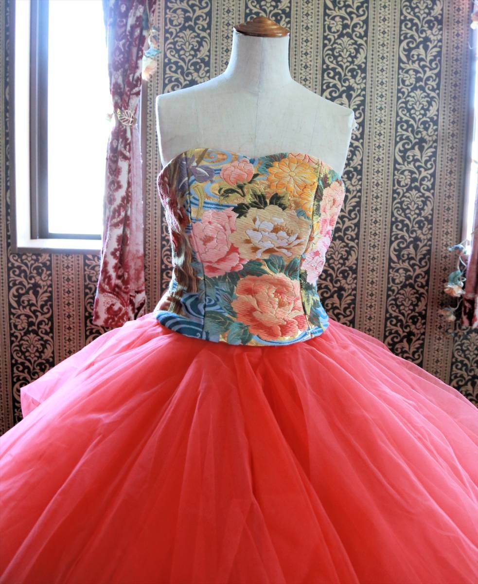 珍しい色打掛生地を使用した着物ドレスgrand pas de deux高級ウエディングドレス5号7号8号XS~Sサイズ和ドレスカラードレス小さいサイズ