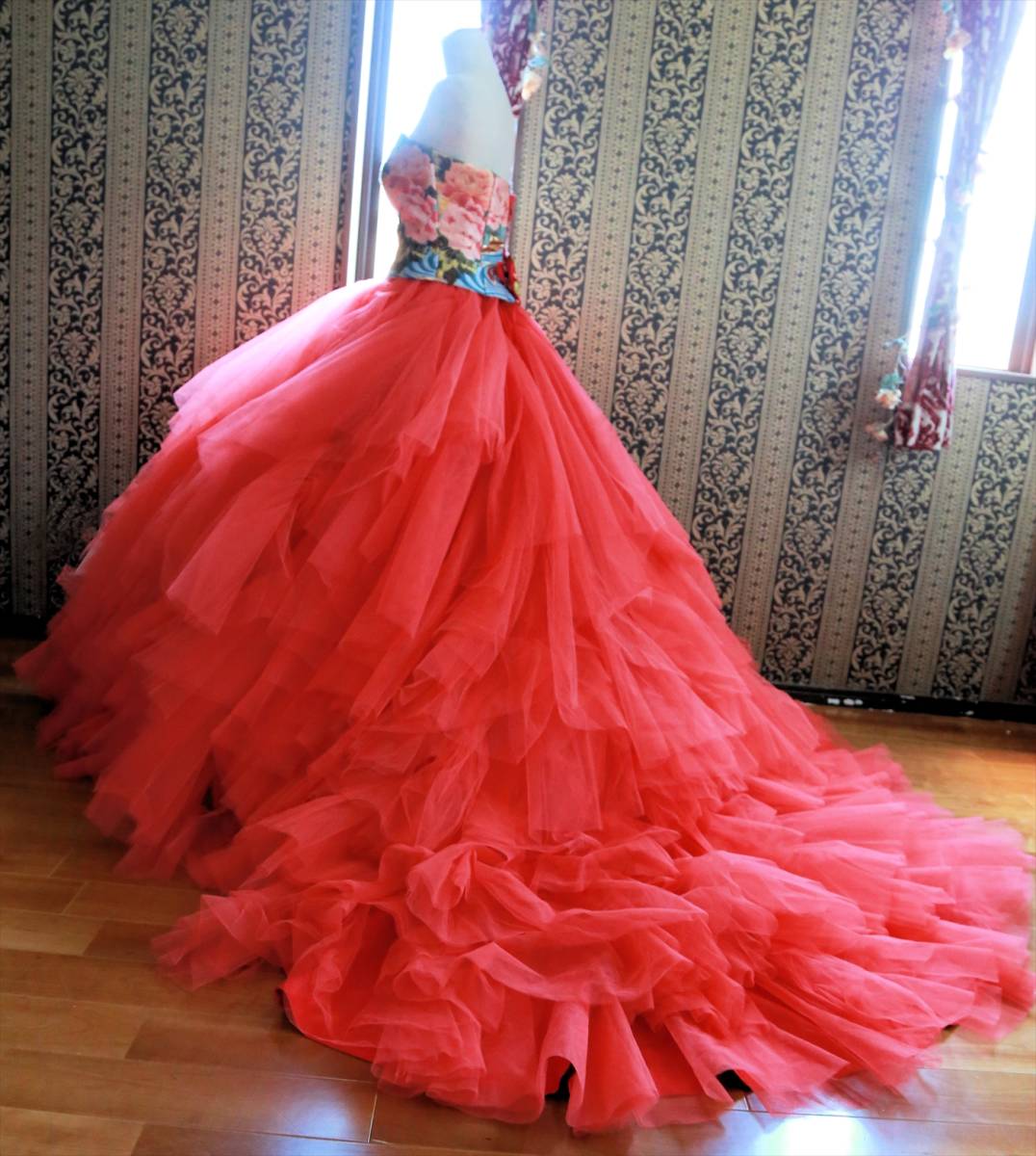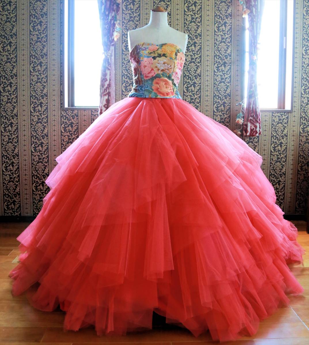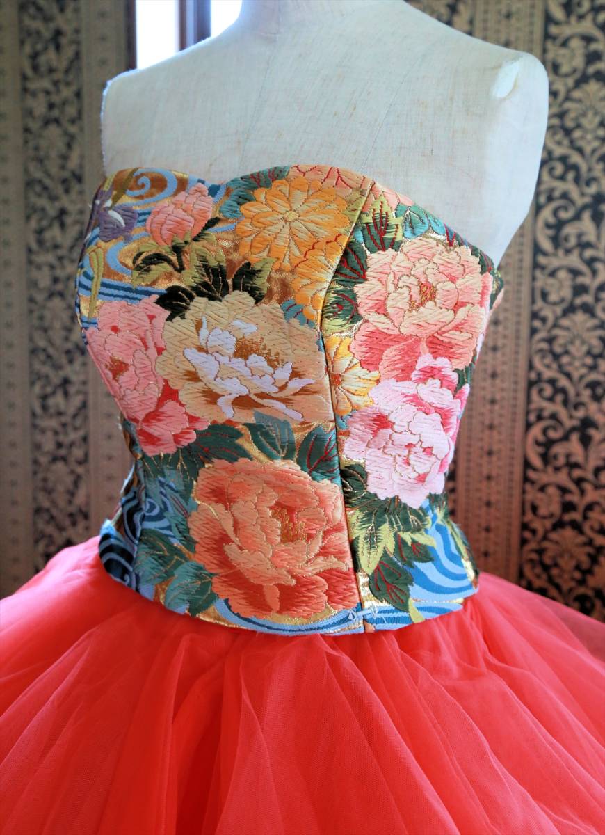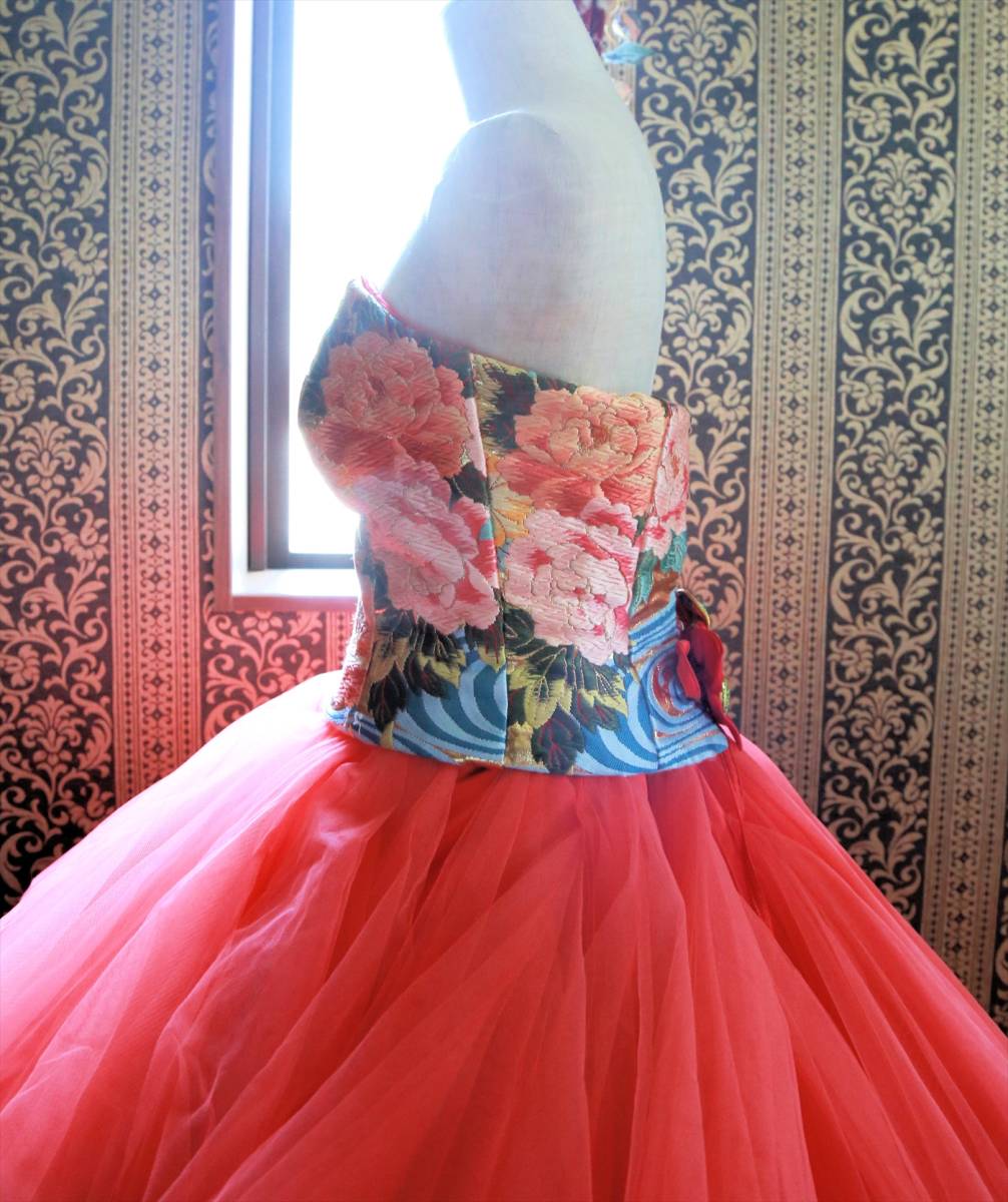 珍しい色打掛生地を使用した着物ドレスgrand pas de deux高級ウエディングドレス5号7号8号XS~Sサイズ和ドレスカラードレス小さいサイズ