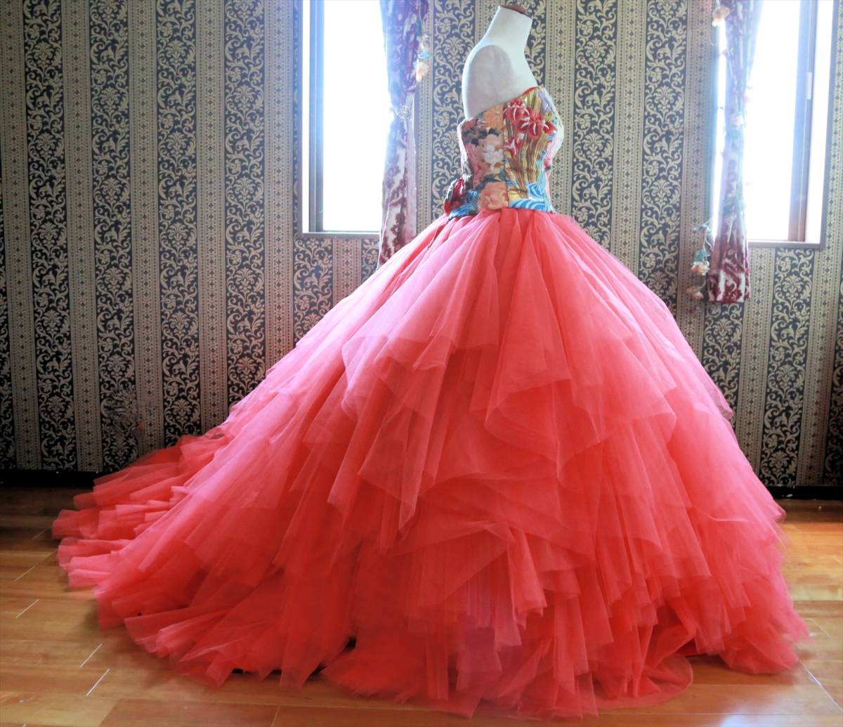 生地は上半身が色打掛の生地、スカート部分がチュール