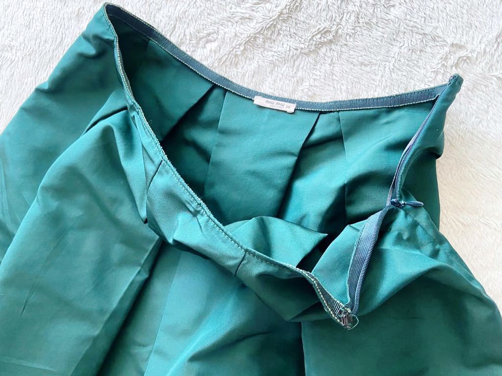 miu miu size38 イタリア製プリーツスカート ダークグリーン 深緑 ミュウミュウ