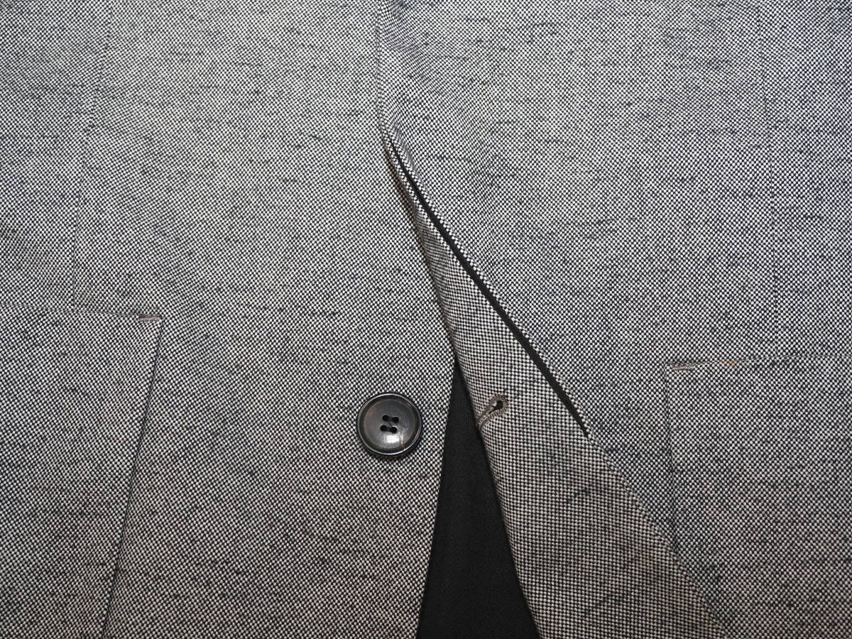 フロントは比翼の2つボタンで裏地は総裏地、ノーベント、袖は本切羽のつくりです。