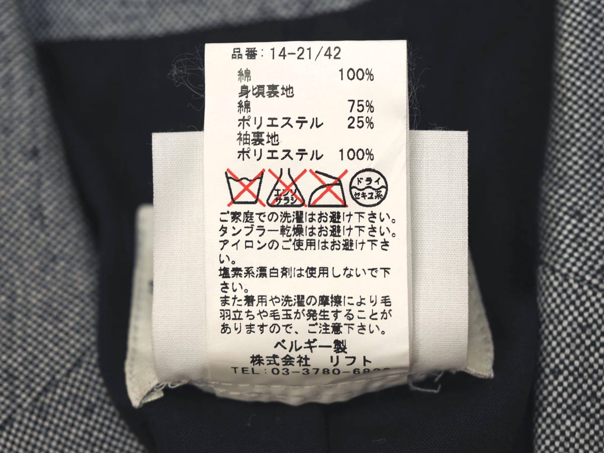 素材 コットン100%、裏地:コットン75%ポリエステル25%、袖裏地:ポリエステル100%