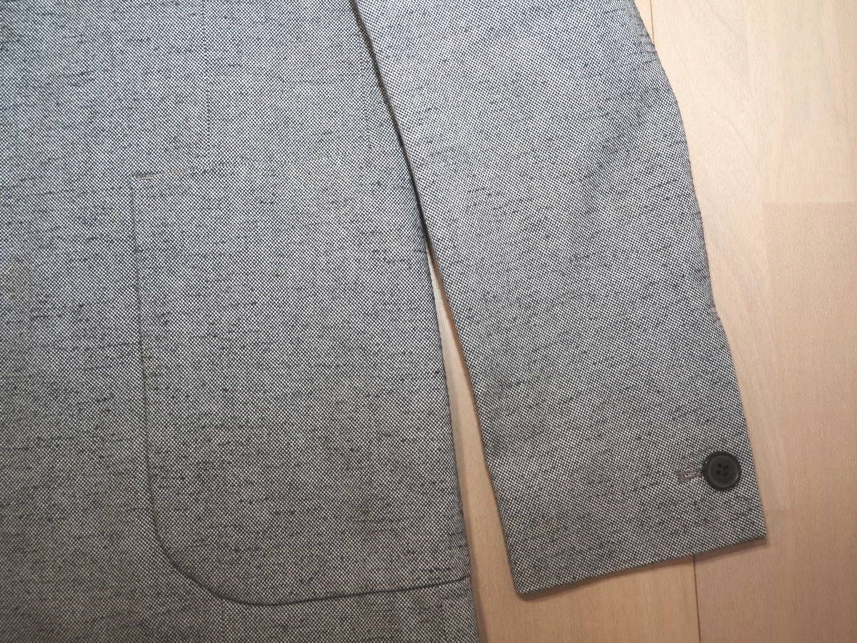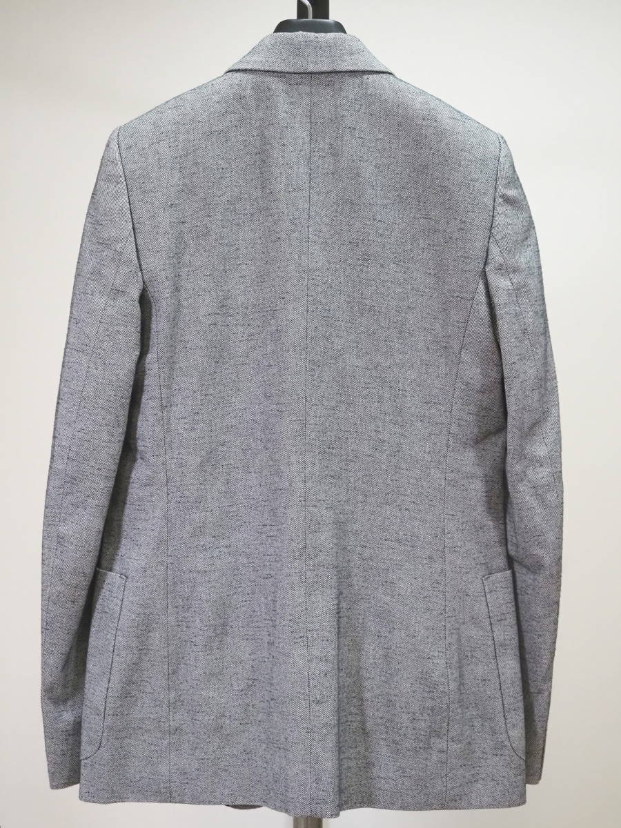 ナローラペルのショールカラーで、ポケットはパッチポケット、肩幅のつまったタイトできれいなシルエットです。