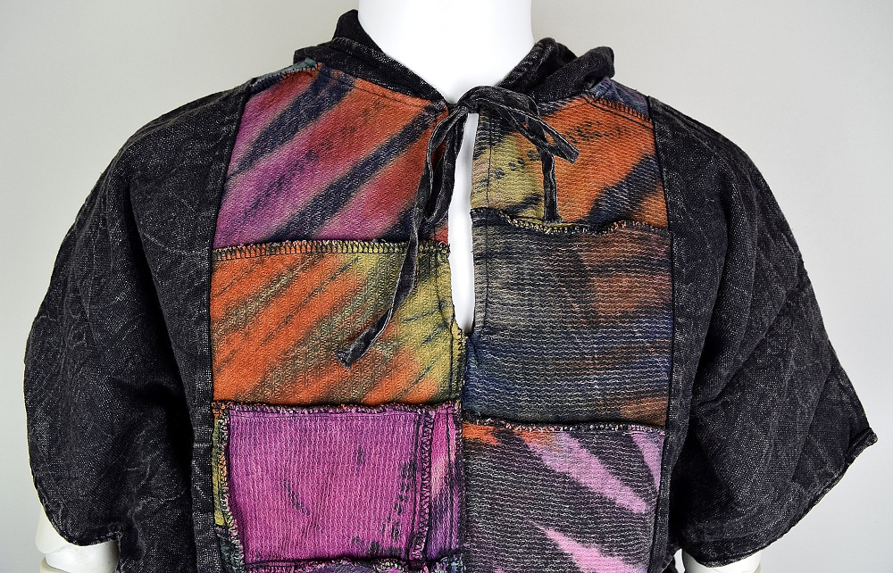 前面中央をタイダイの布を縫い合わせた、かなりおしゃれなポンチョです。