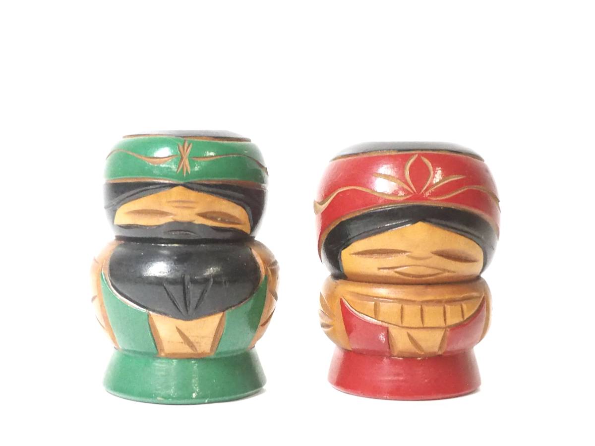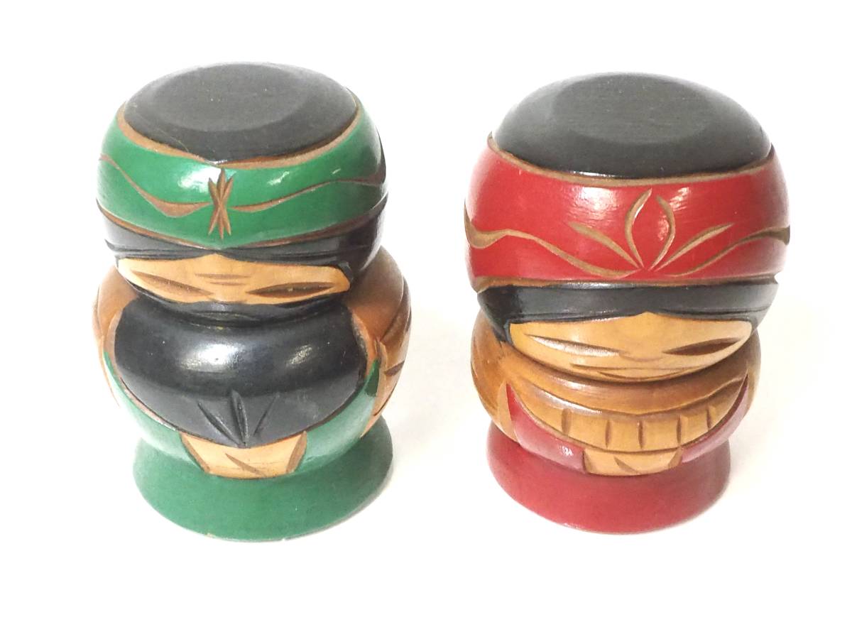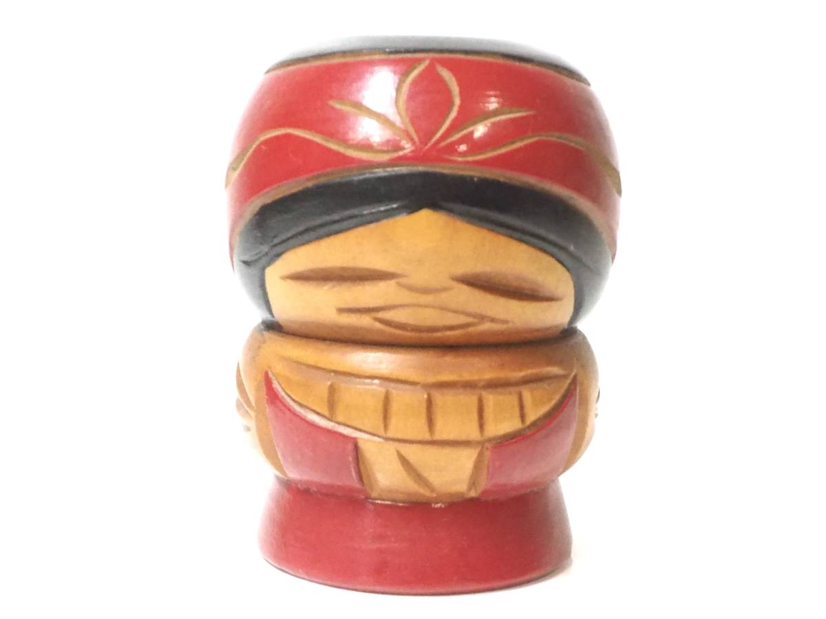 ビンテージ 北海道網走市の民芸品 アイヌ木彫り人形 ニポポ人形 夫婦ペア 男性 直径6cm 高さ9cm 女性 直径6cm 高さ9.5cm YRT506