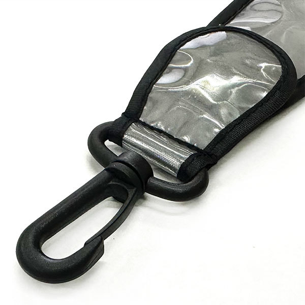 フック付き、カバンやベルトなど掛けられるところならどこでも使えます。