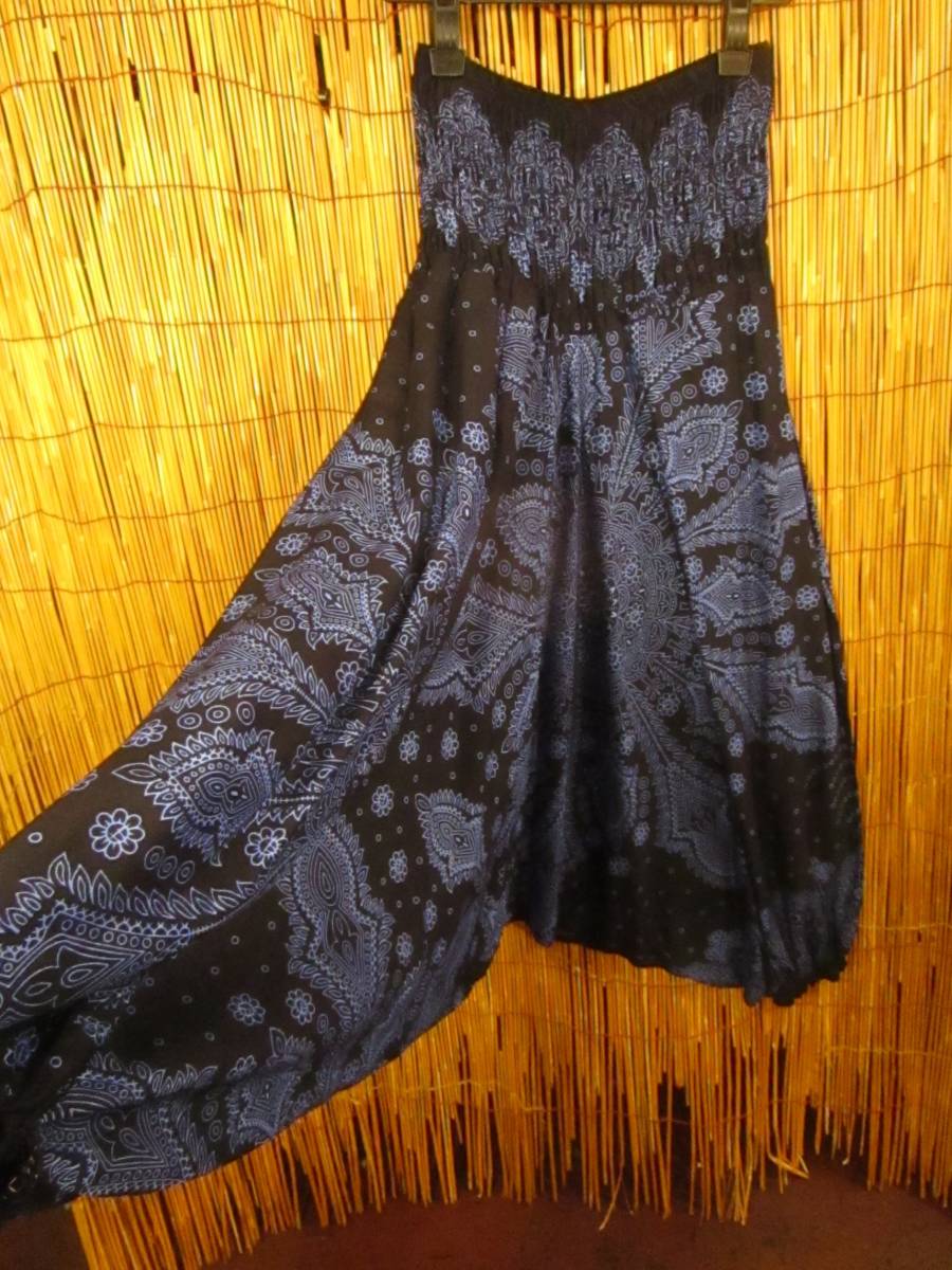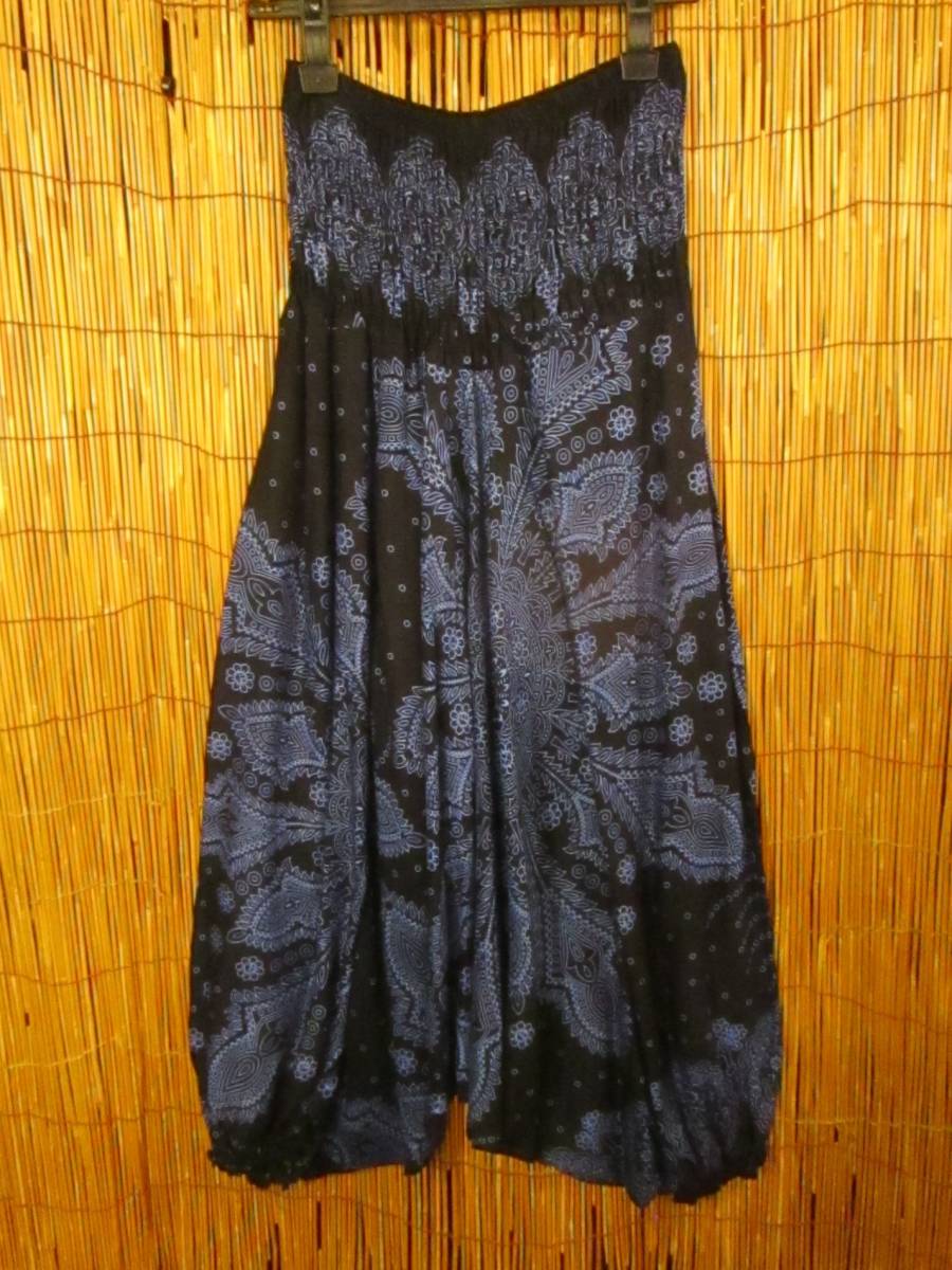 【送料込み/SALE】③新品*男女兼用*レーヨン素材*2WAY*黒色ベース*曼荼羅風プリント*ふんわり*サルエルパンツ MAJAM