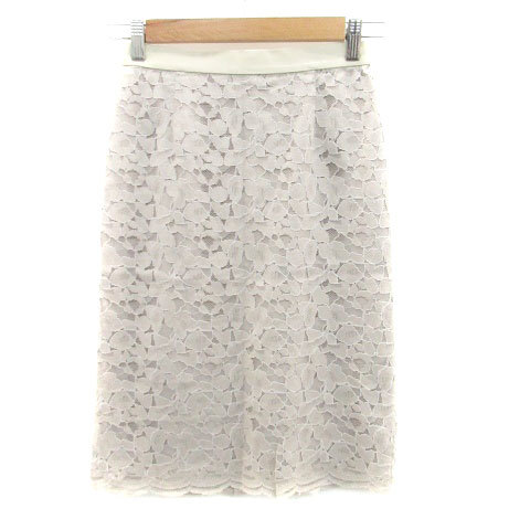 グリーンレーベルリラクシング ユナイテッドアローズ green label relaxing タイトスカート ミモレ丈 総レース 36 グレー /HO3 レディース