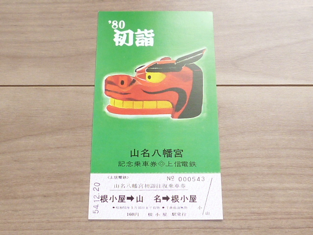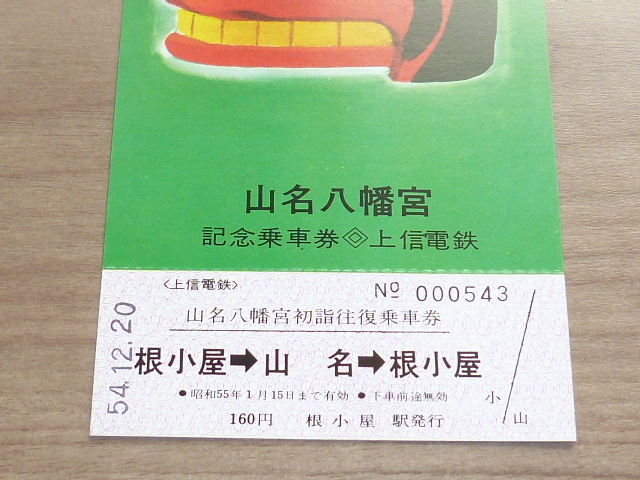 記念切符★山名八幡宮 '80 初詣 記念乗車券★上信電鉄★昭和54年12月20日★根小屋→山名★000543