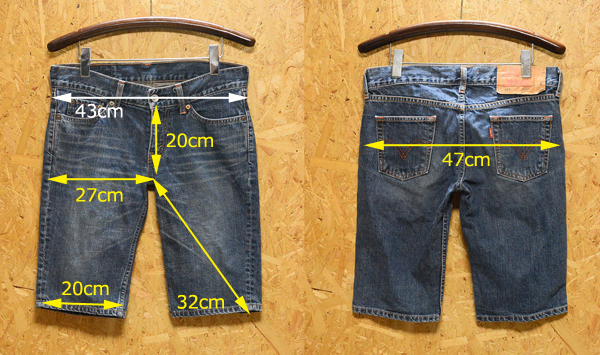 (平置き43cm / トップボタンの中心点を基軸として横幅を計測。あるいはベルトループの真ん中を基軸として横幅を計測)