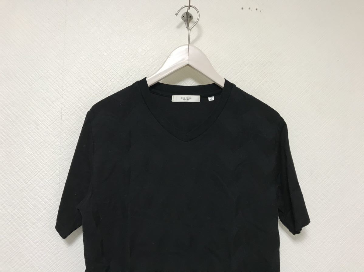 商品名:本物エディフィスEDIFICEコットンデザイン柄Vネック半袖Tシャツメンズアメカジサーフミリタリービジネススーツ黒ブラックL日本製
