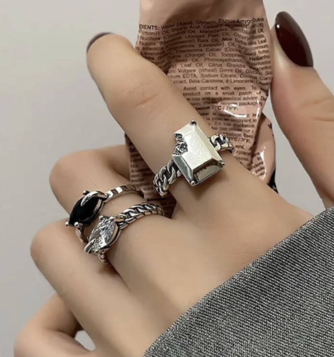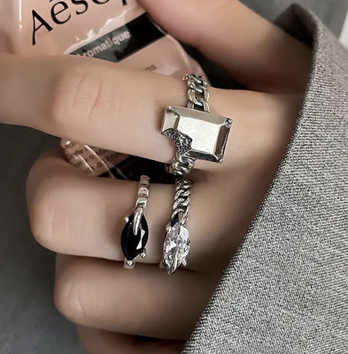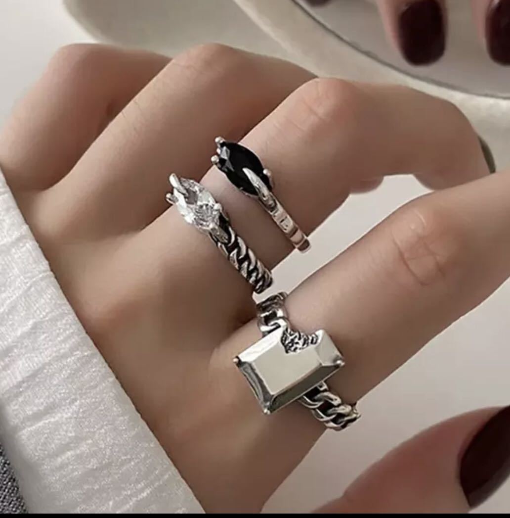 送料無料*MagiaDolce 57702点セットsilver925刻印あり シルバーリング ワイドリング かじりチョコ風リング オープンリング イヤーカフ