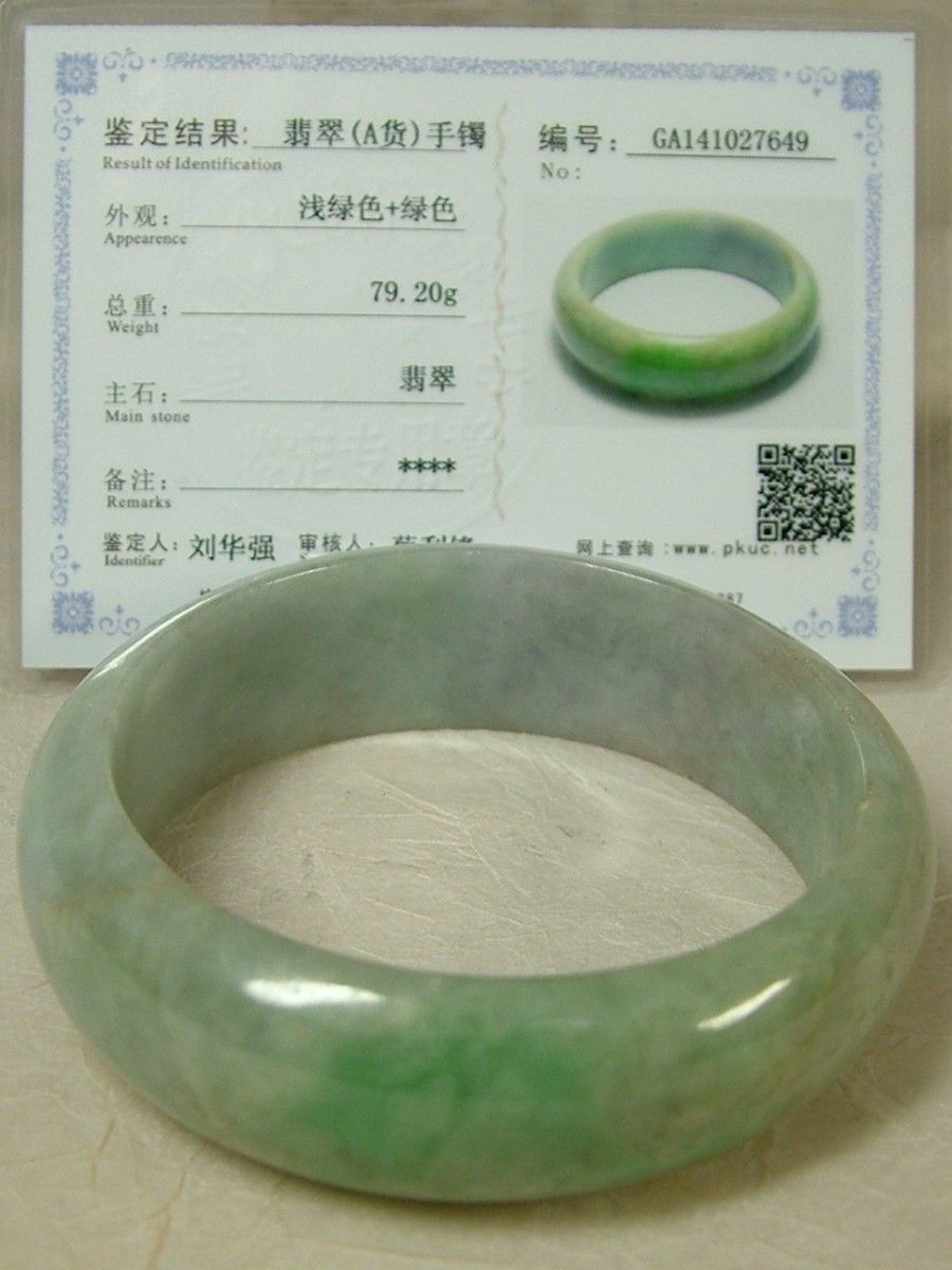 ★商品説明★ | 内直径:約57mm 高さ:19mm 厚さ:8mm 重さ:79.2g 【材質】天然翡翠(ジェイダイト、硬玉)・俗称「翡翠A貨」・完全無処理翡翠。 緑色が綺麗なミャンマー翡翠。飾り彫りのないシンプルなデザインですが、一塊の石から作られた贅沢なバングルです。 ◎北京市宝玉鑑定所の鑑定証付き。 ●中国では翡翠の腕輪は女性の定番ファッションで、お守りです。特に意外な怪我に神力を持つ、と言われています。 ◎商品につきましては注意を払った検品を行っておりますが、稀に表面や内部にクラック状の筋が見受けられる場合が御座います。それは石本来の石紋で傷ではありません(割れが生じ易いヒビではありません)。返品の対象にはなりませんのでその旨御了承の上、ご検討下さい。 ☆内直径サイズにご注意下さい。 【当商品の返品・返金について】 ◎恐れ入りますが、内直径サイズの記載は正しくしておりますので、御購入後お客様側のサイズ間違いによる返品・返金はお断り致します。予めご了承下さい◎ |
