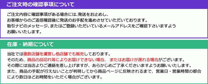 ご注文内容に確認事項がある場合には、発送をお止めし、お客様からのご返信確認後に発送のお手配を進めさせていただいております。