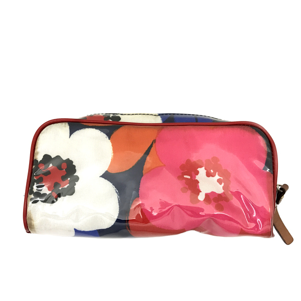 【中古】【傷や使用感が目立つ】 ポーチ 花柄 レッド×ブルー×ネイビー