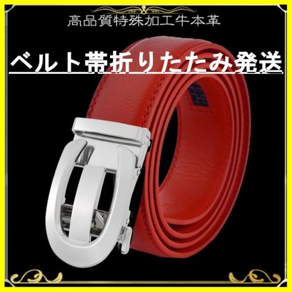 ベルト 【銀U】【赤】 折りたたみ発送 穴なし 無段階調整ベルト ゴルフベルト 人気 オートロック メンズ 革 ビジネス カジュアル