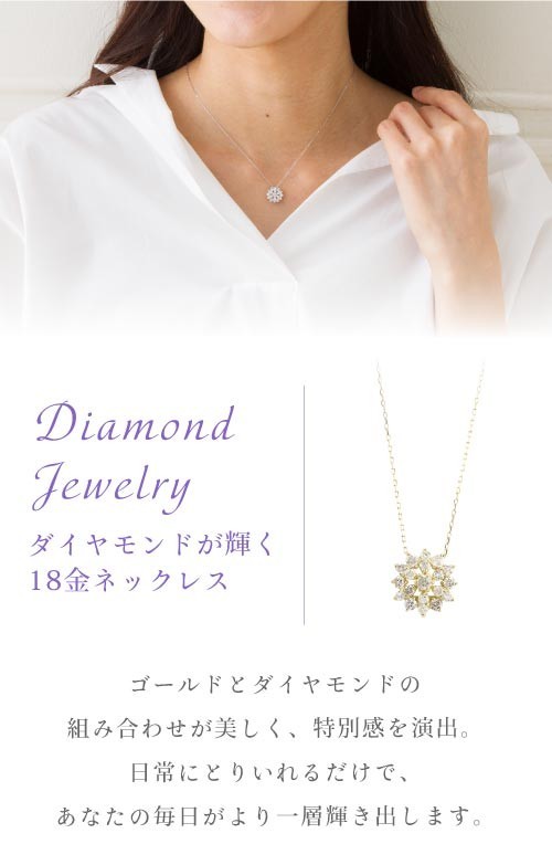 商品コード en659 発送は2週間ほどですダイヤモンドを人気のフラワーに仕立てた落ち着きのあるデザインダイヤモンドの輝きのハーモニーは胸元からあふれんばかりで見る人に好印象を残します落ち着いた華やかさと贅沢さが大人の女性にピッタリです■商品詳細材質 k18ゴールド (ホワイト・ピンク・イエローよりお選びいただけます)宝石名 天然ダイヤモンド 19石 トータル0.50ct大きさトップ ヨコ約12.0mm タテ 約12.0mm 厚み 約5.0mmチェーン K18アズキチェーン 幅0.5mm(線径0.24mm) 全長40cm※アジャスター管付※トップより取り外し可備考 刻印金種;石目N-kohaya0yaお誕生日 プレゼント 結婚記念日 クリスマス プレゼント ホワイトデー 結婚式 卒業式 入学式 新生活 母の日 成人のお祝い 彼女 恋人 女性への贈り物 ギフト対応 送料無料普段使い 日常使い デイリー カジュアル アクセサリー レディース 自分へのご褒美 浴衣に似合う ボーナスセール 夏 ポイント消化 安い