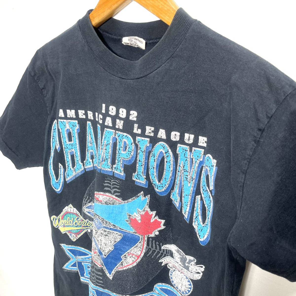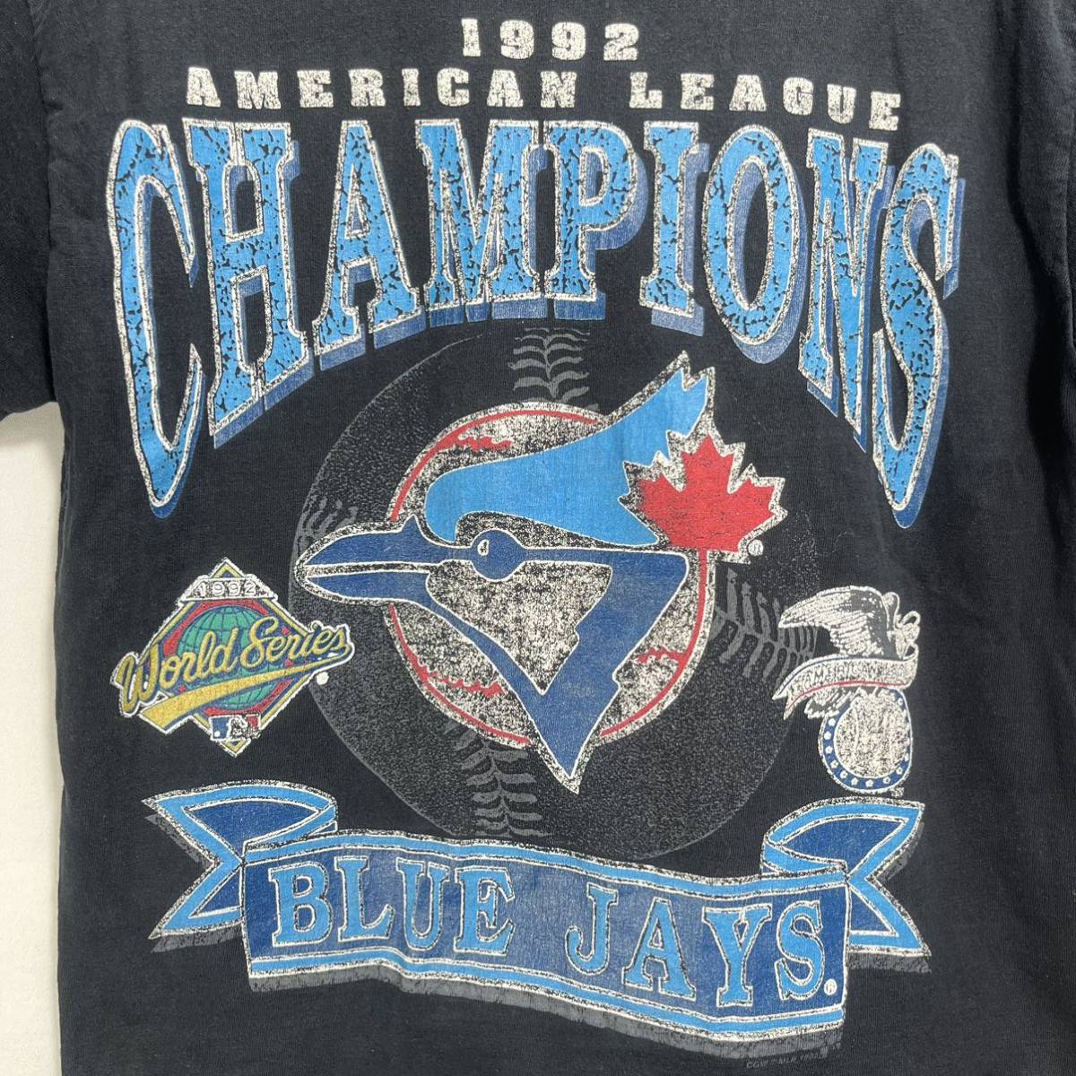 ■ 子供用 90s ビンテージ CANADA製 WAVES MLB 1992 CHAMPIONS BLUE JAYS ブルージェイズ イラスト シングルステッチ Tシャツ 黒 野球 ■