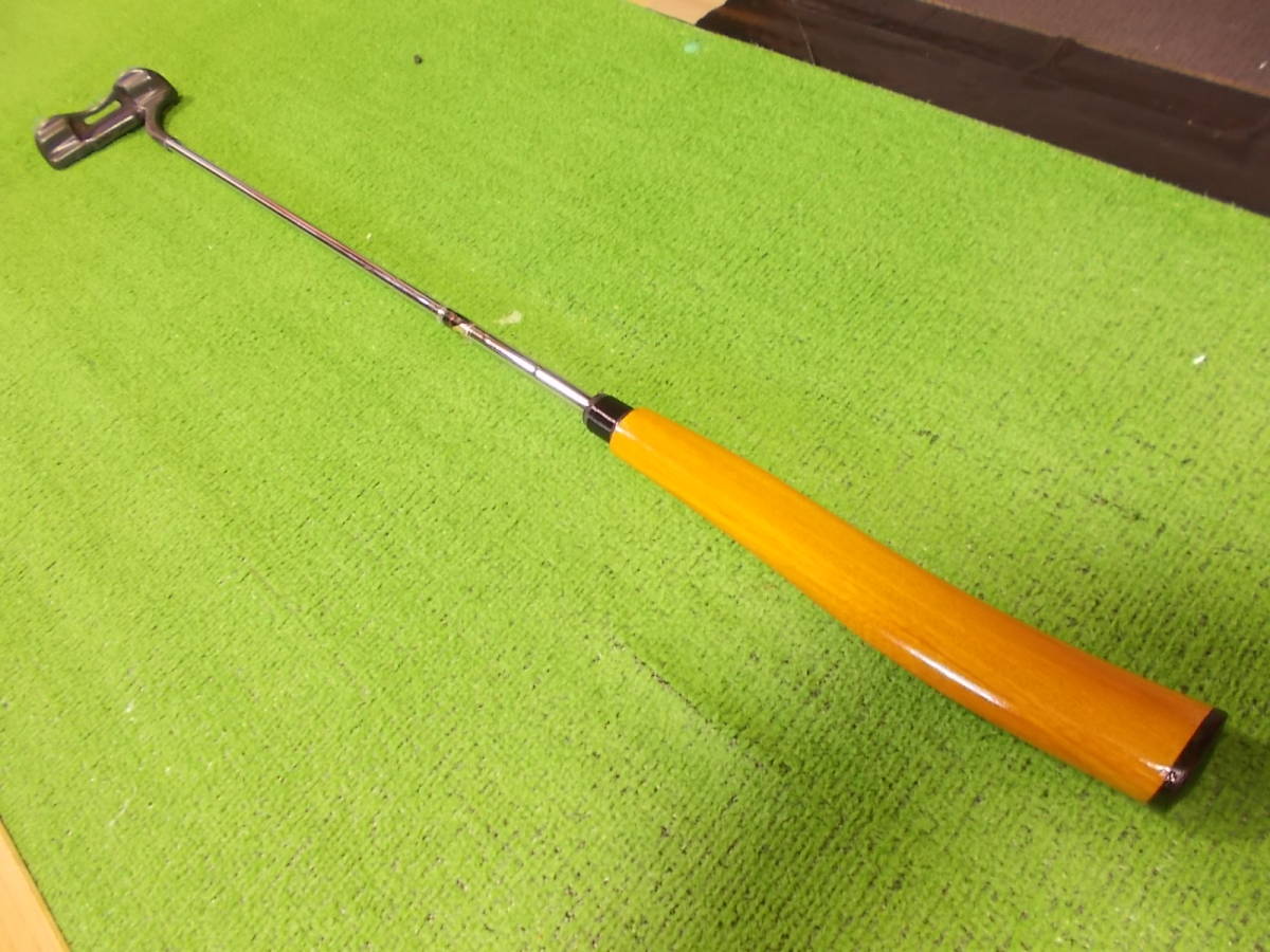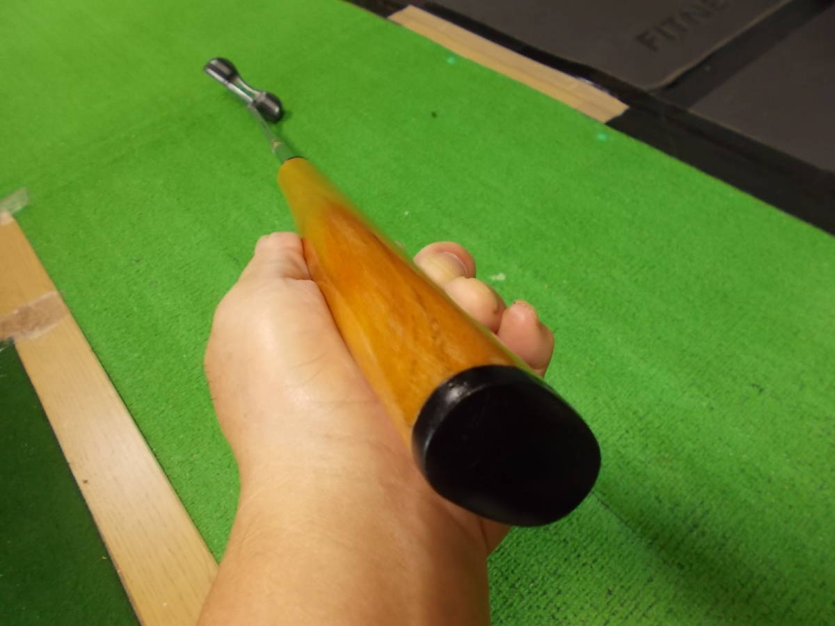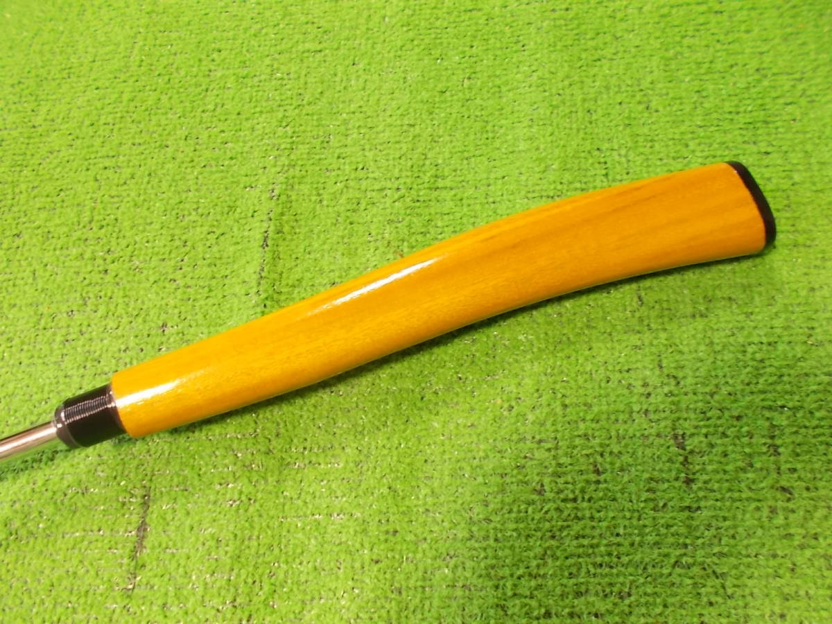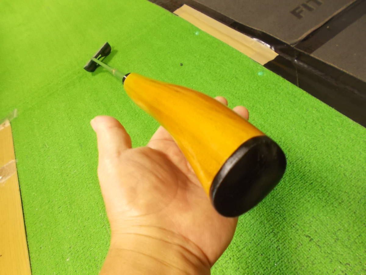 ラバーグリップを取り外し木材を取り付けた後、形を削り出した木製グリップです。