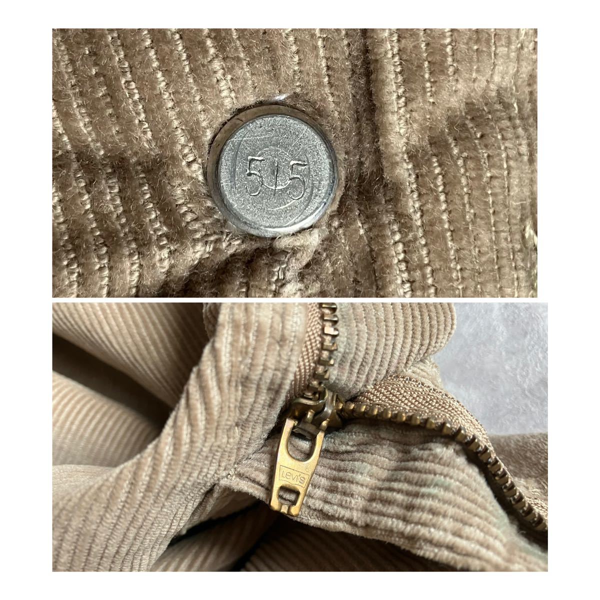 色目はベージュ系茶色、ボタン裏刻印515、パッチにはMADE IN USA表記があります。