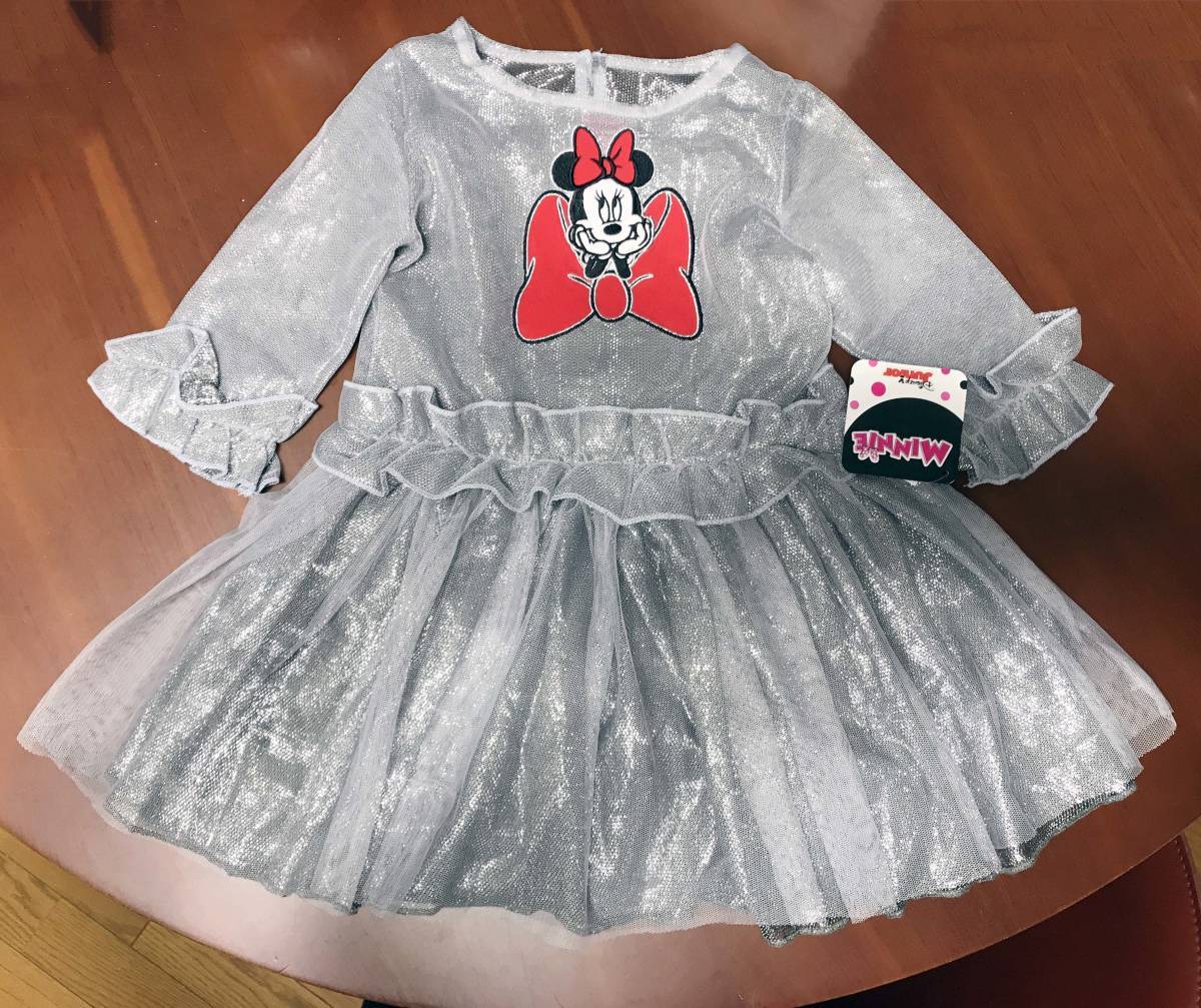 新品 100 105 ★ ミニー ワンピース ドレス シルバー 3T チュール フリル ディズニー ミニーちゃん Disney Minnie キラキラ 95 100 105 110