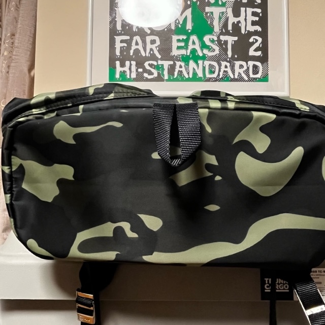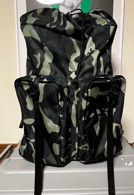 ナイロン生地で汚れに強く、またカモフラ柄でとてもインパクトのあるデザインです