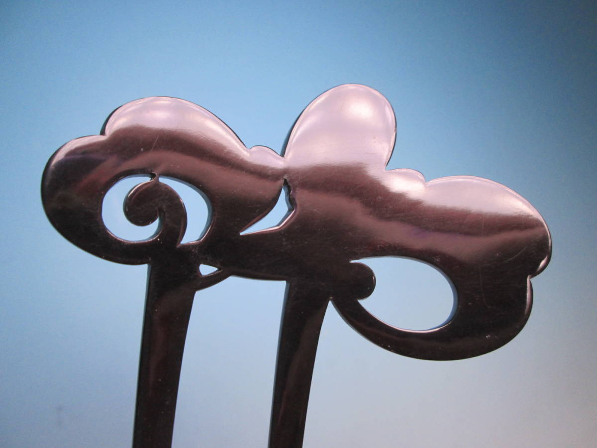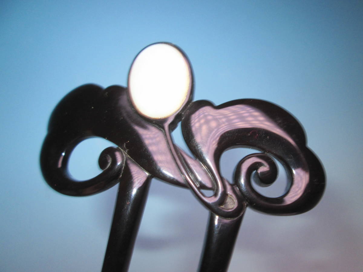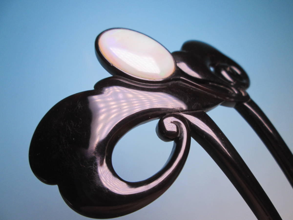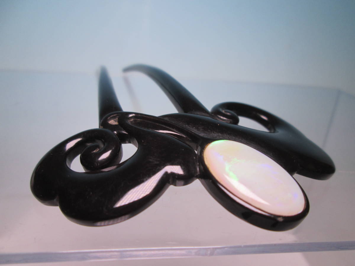 【江月】アンティーク・三越 本鼈甲 黒甲 オパール飾りのかんざし 木箱付き