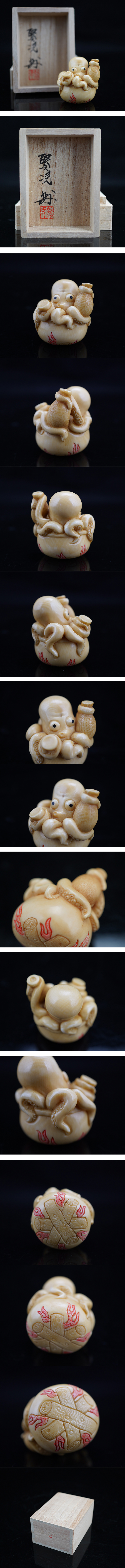 鳴】根付界の巨匠 阿部賢次 作 『たこ』 高級材 根付 共箱 高円宮コレクション収蔵作家 美品 4-14検:懐玉斎 提物 印籠 NETSUKE
