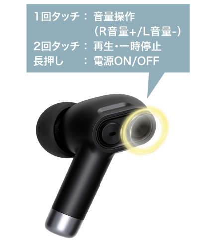 (再生・一時停止、音量調整、曲送り・曲戻し、通話、音声アシスタント)