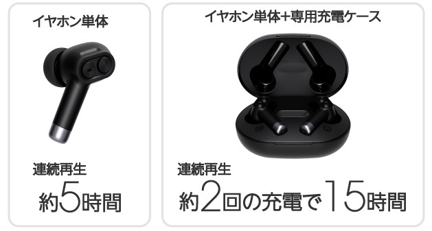 充電時間(イヤホン) 約2時間(専用充電ケースにて約2回充電可能)