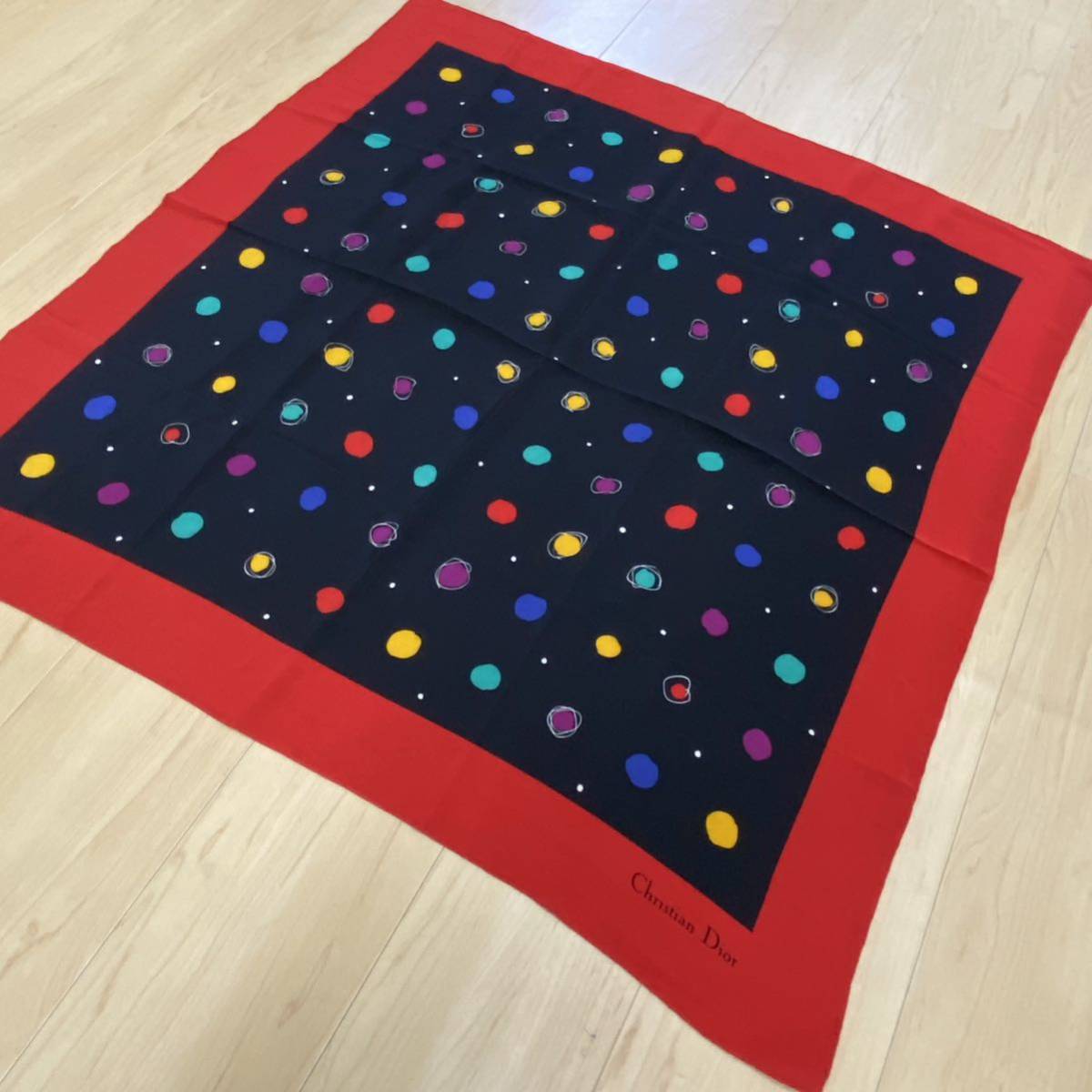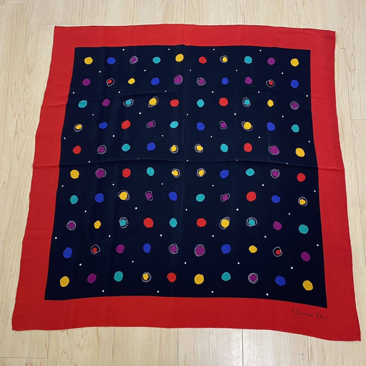 Christian Dior クリスチャンディオール スカーフ ドット ふちレッド no.4
