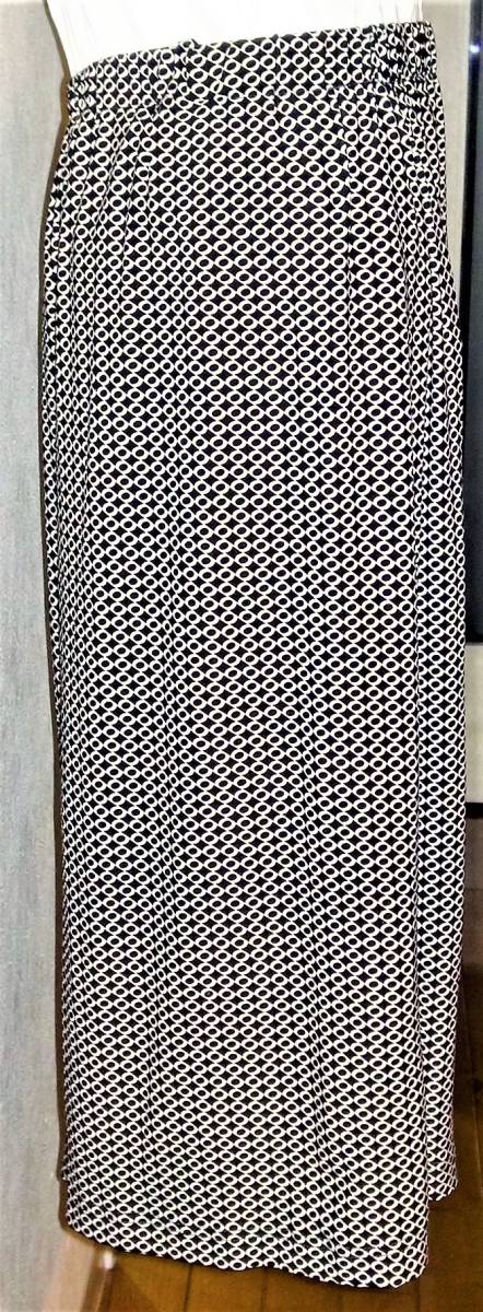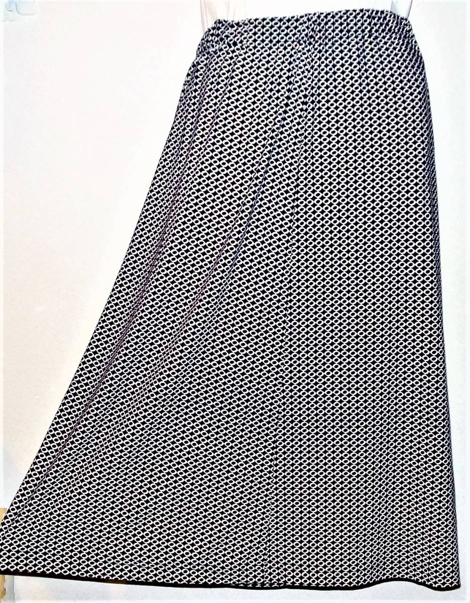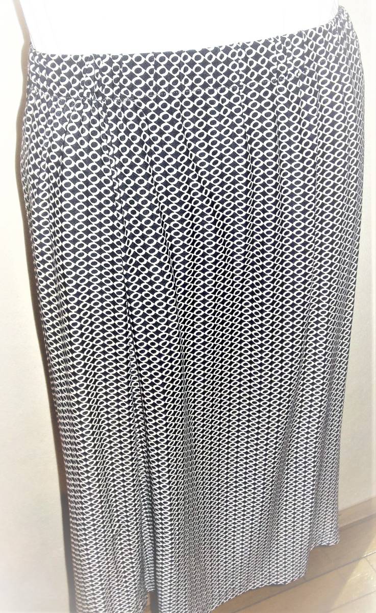 (レディース・夏物・ハンドメイドスカート・新品)L~LL ウエスト幅40~50㎝(全周ゴム入)黒地に丸鎖柄 ポリ100%透け感なし 裏なし