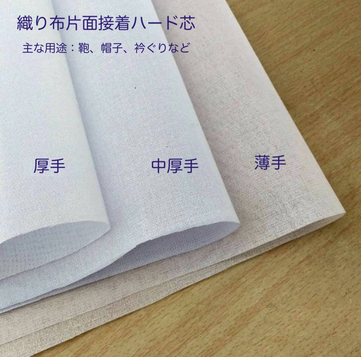用途:鞄・帽子・衿ぐりなど重さがかかるところを中心に接着芯で補強します。形を保ちたい時は全体に貼ることもあります。