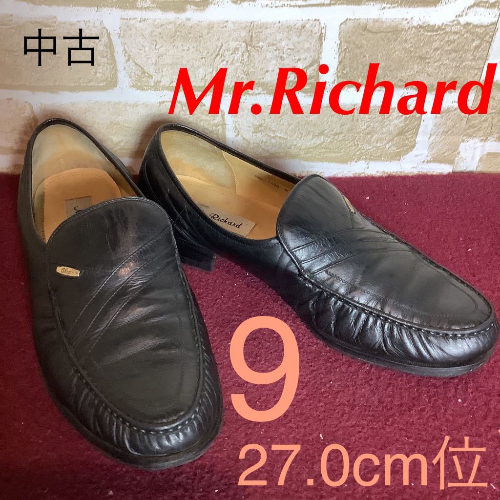 【売り切り!送料無料!】A-312 Mr.Richard!ローファー!9 27.0cm位!黒!ブラック!ビジネスシューズ!冠婚葬祭!普段ばき!仕事用!中古!
