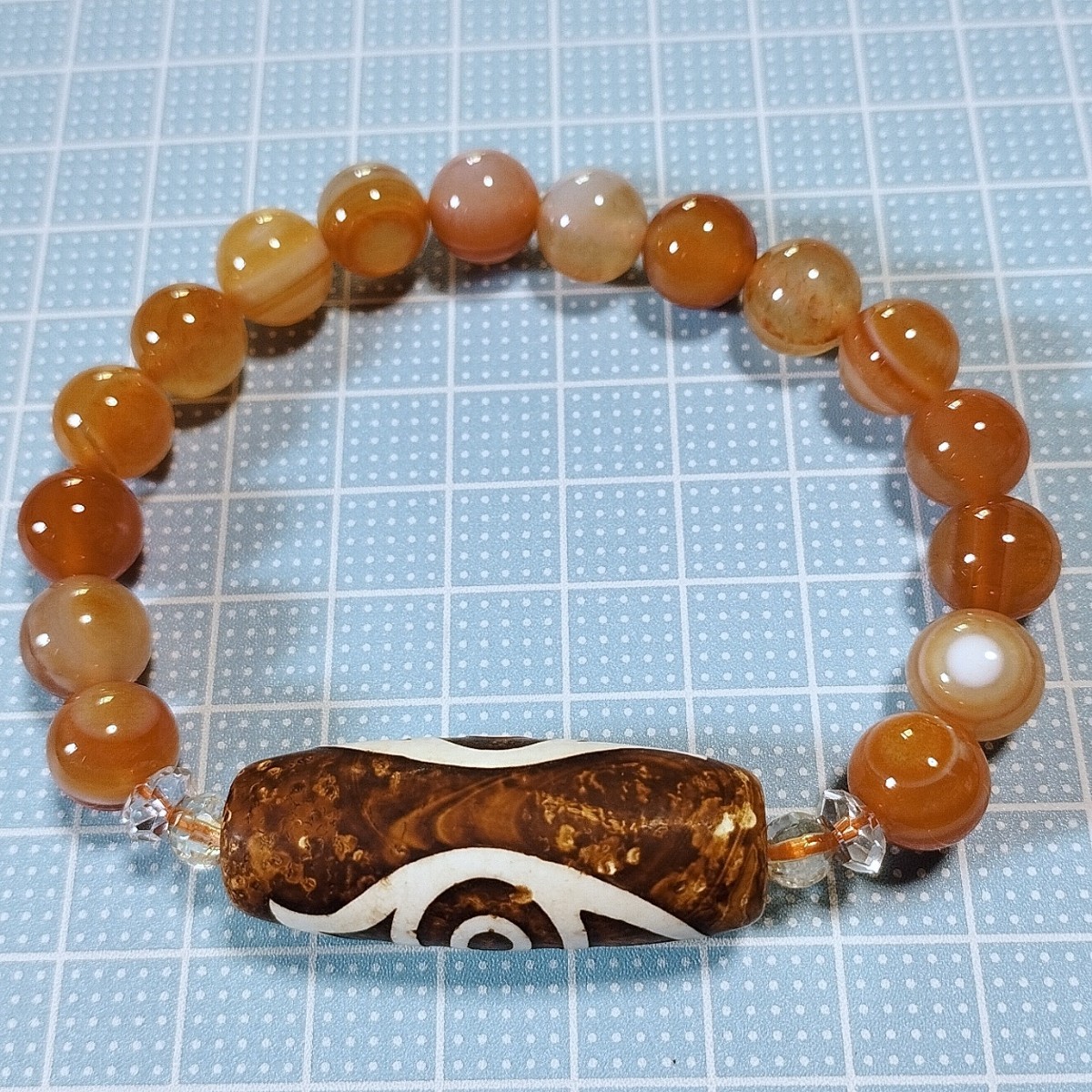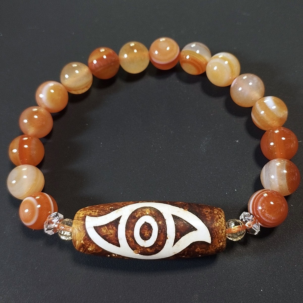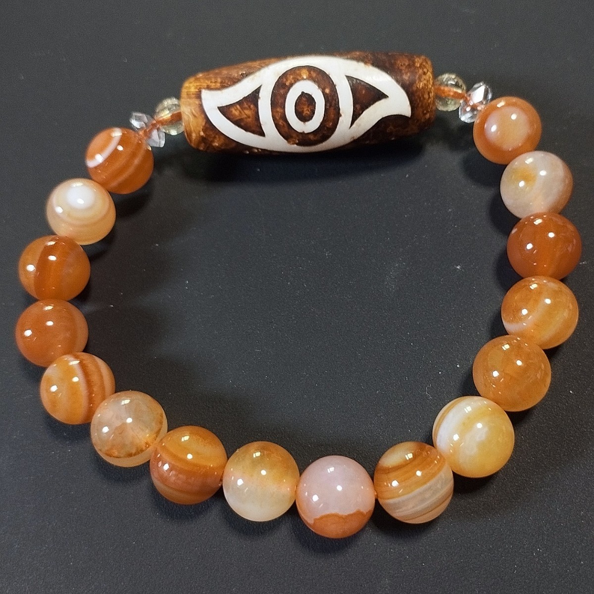 鳳凰眼天珠(仏龍眼天珠・佛龍眼天珠)とサードオニキスのデザインブレスレットです。