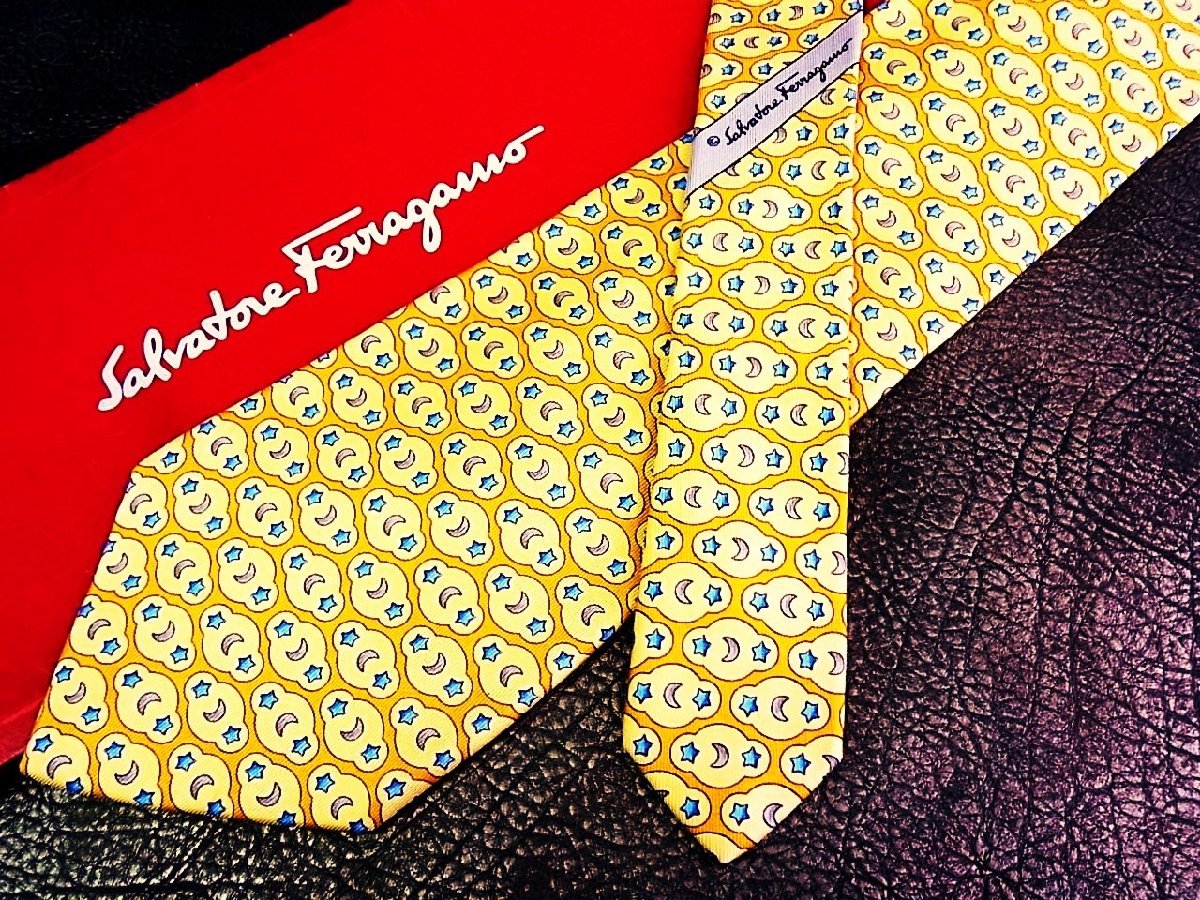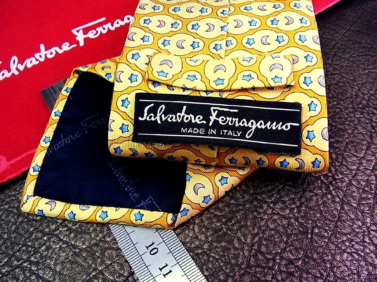 ★良品★3R06002【Ferragamo】フェラガモ「月 星 スター 柄」ネクタイ