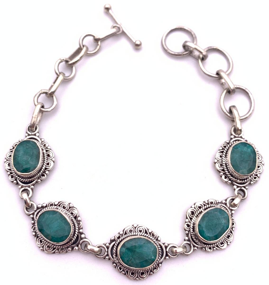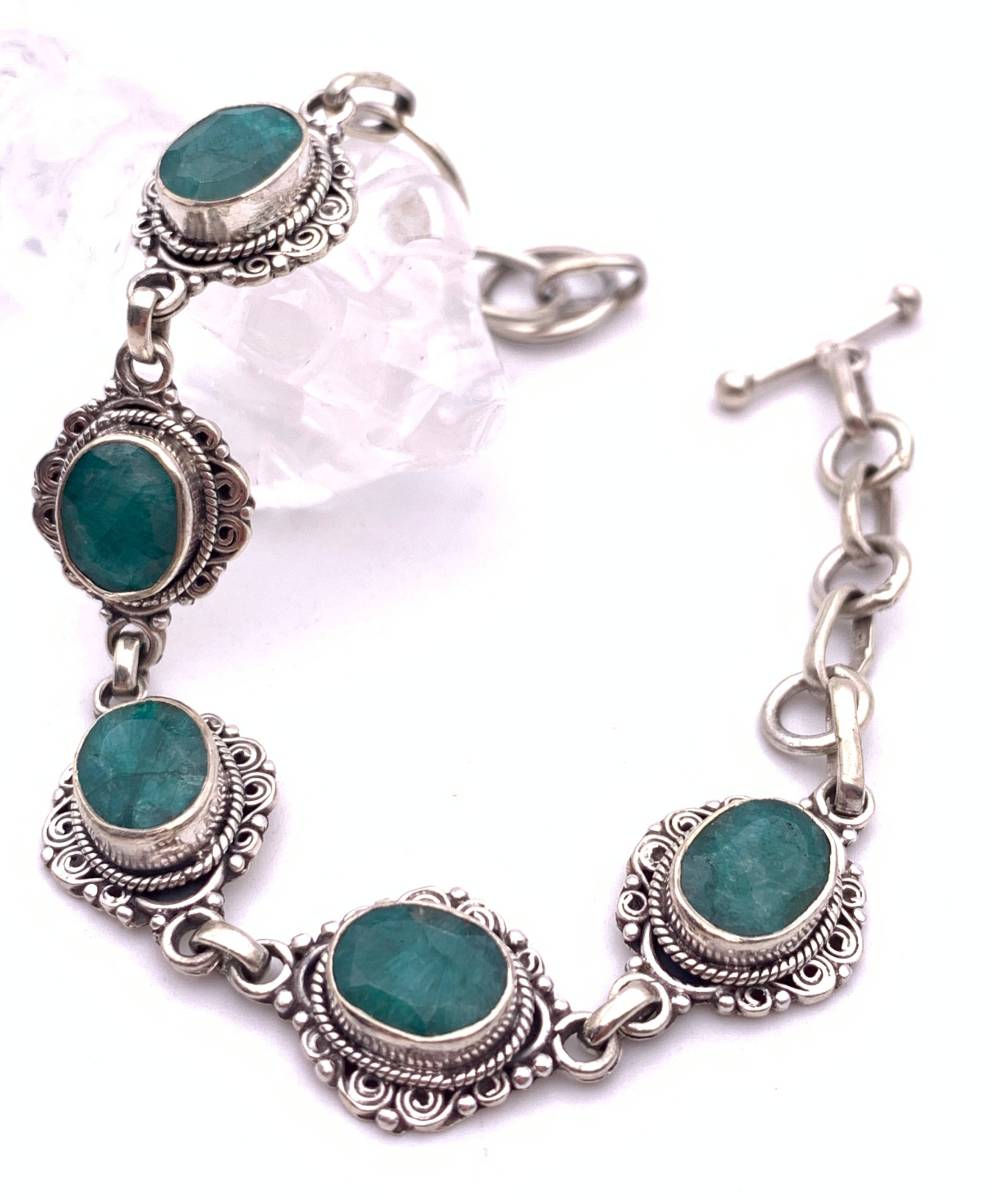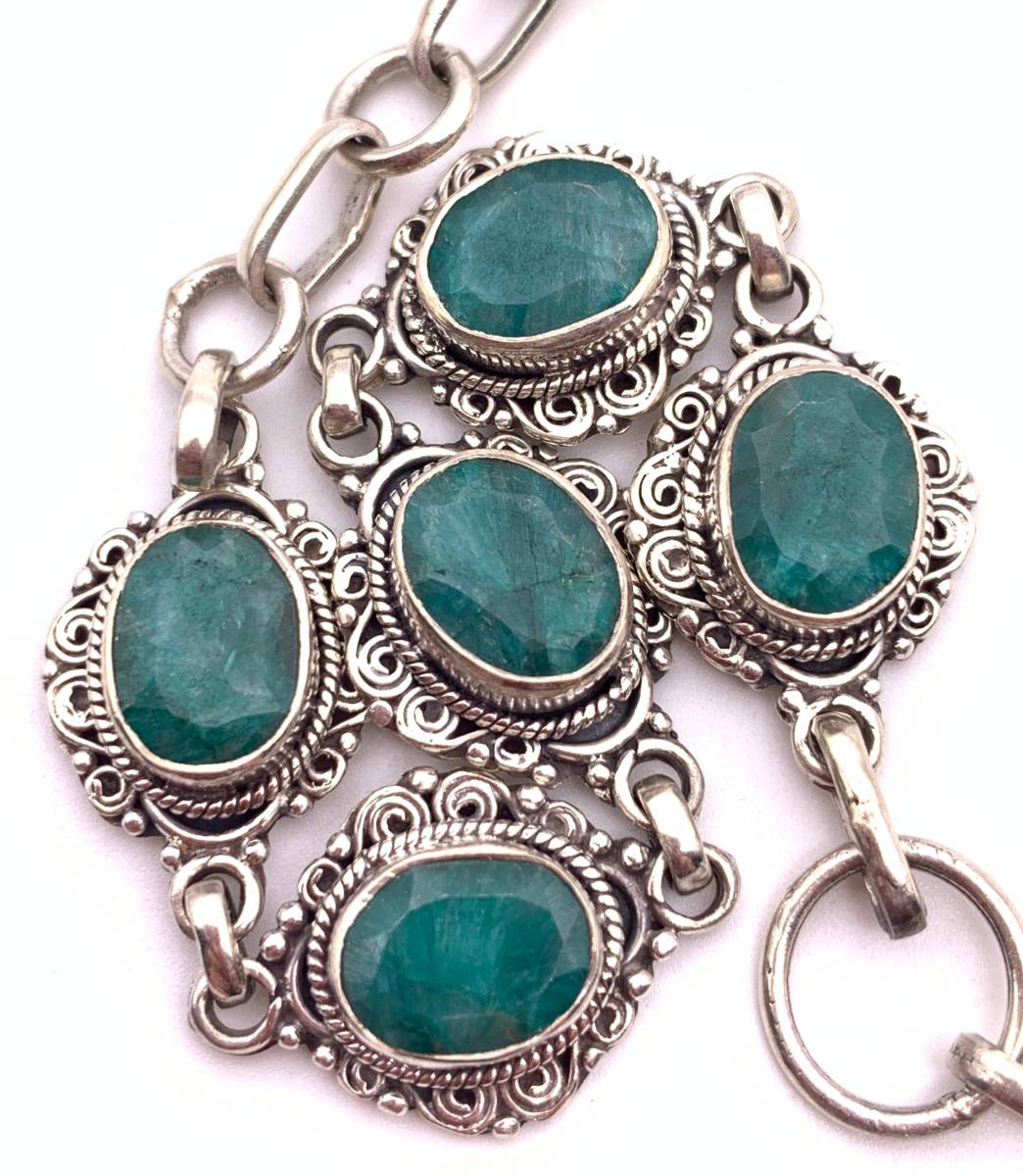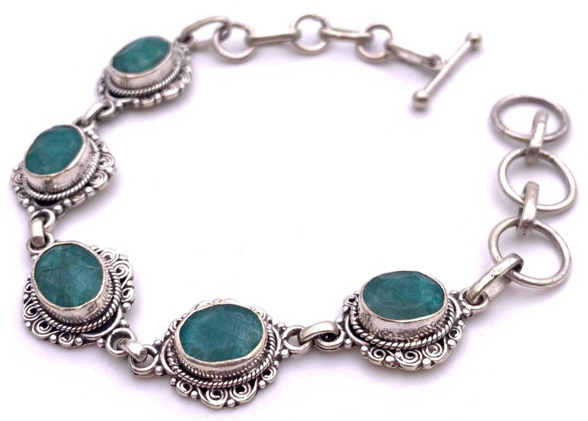 天然石エメラルド silver925ブレスレット-A5