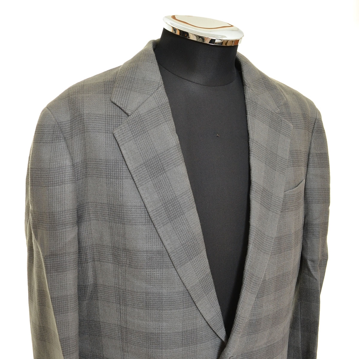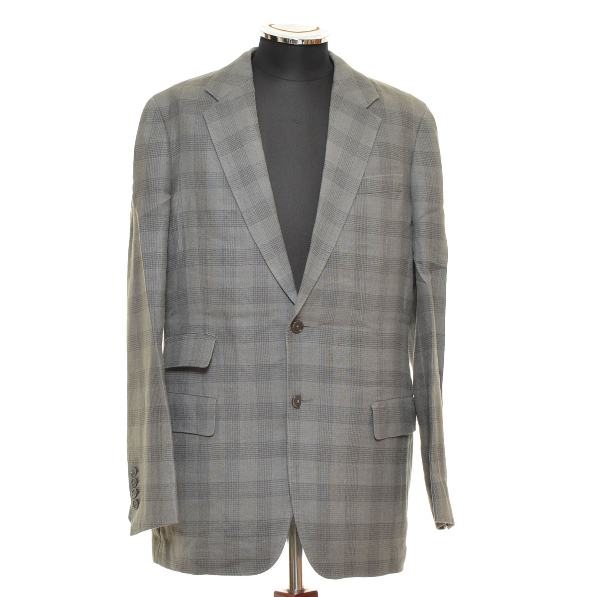 〇160014 DESIGN WORKS デザインワークス ◯2B テーラードジャケット AMBER LINE サイズ50 リネンブレンド メンズ 日本製 グレー チェック