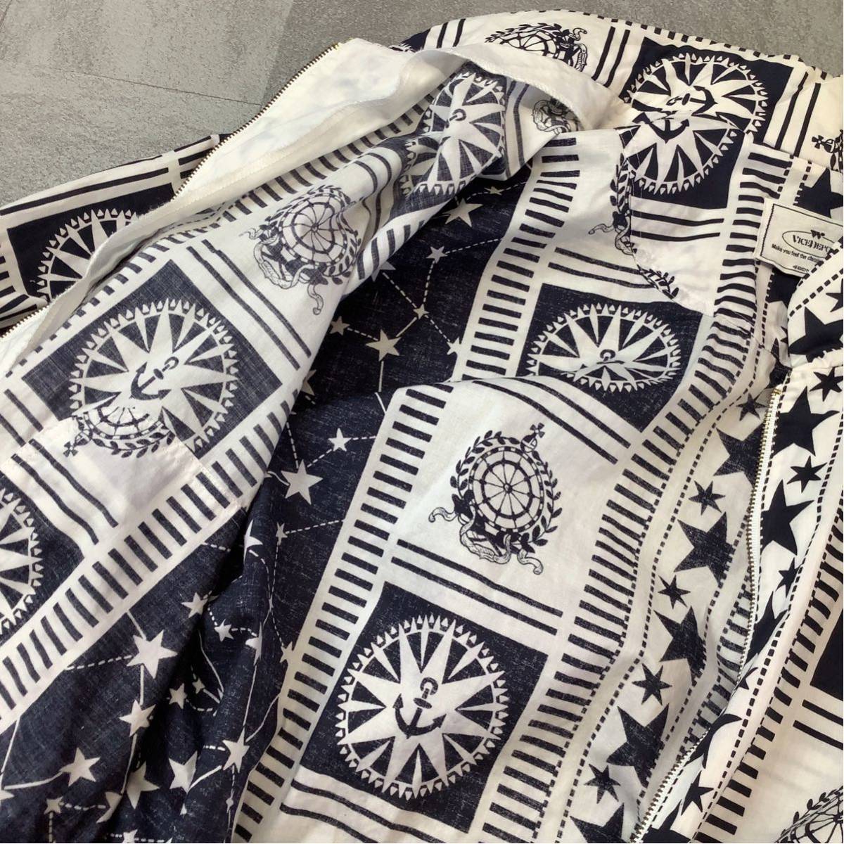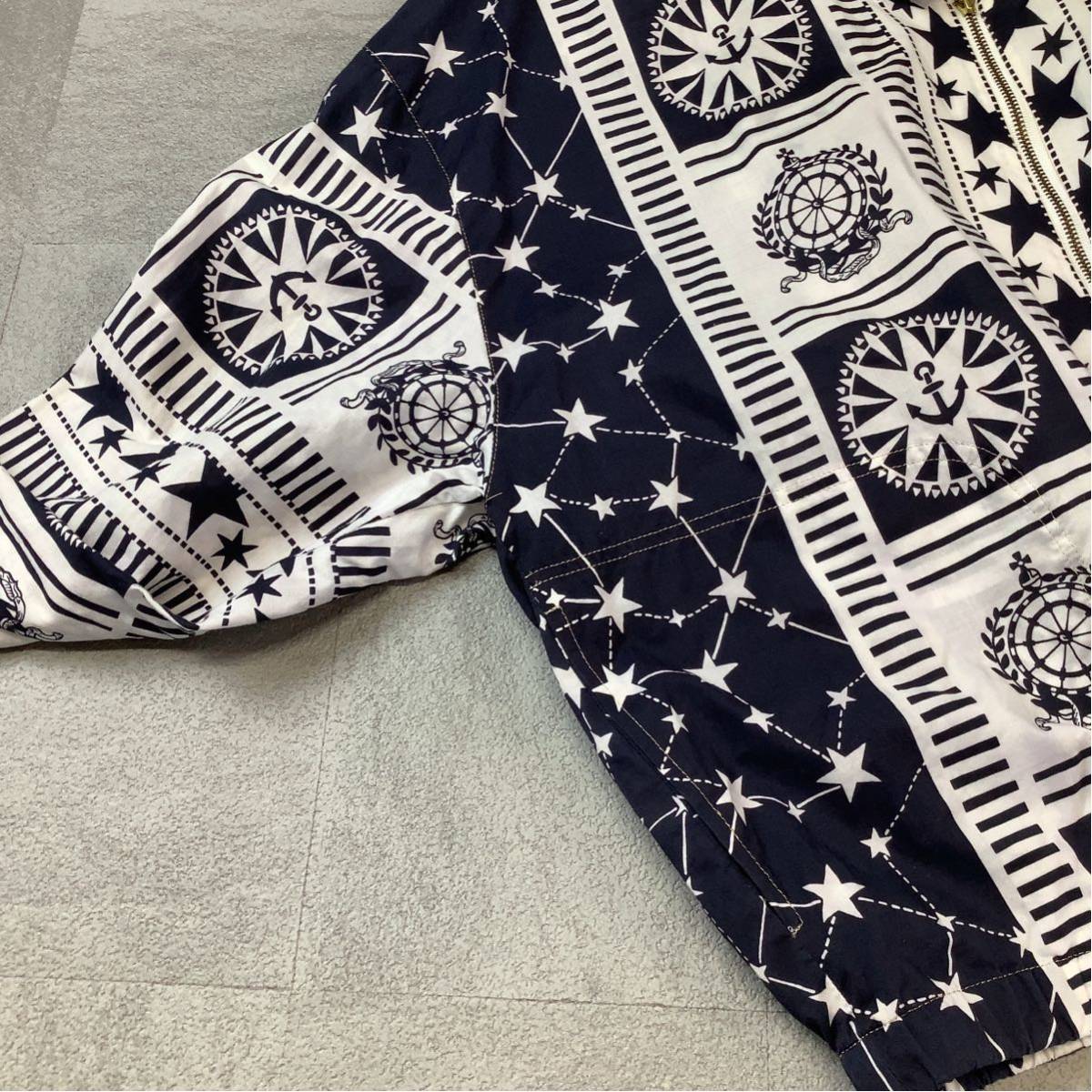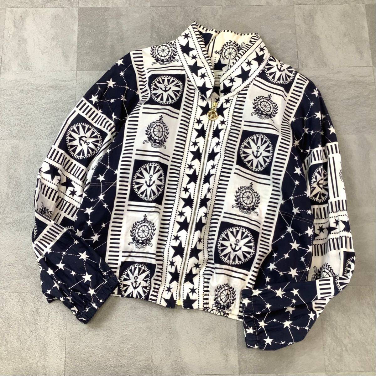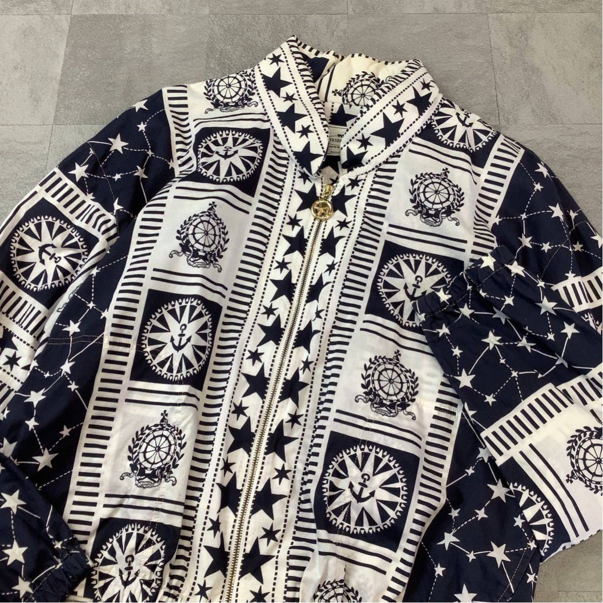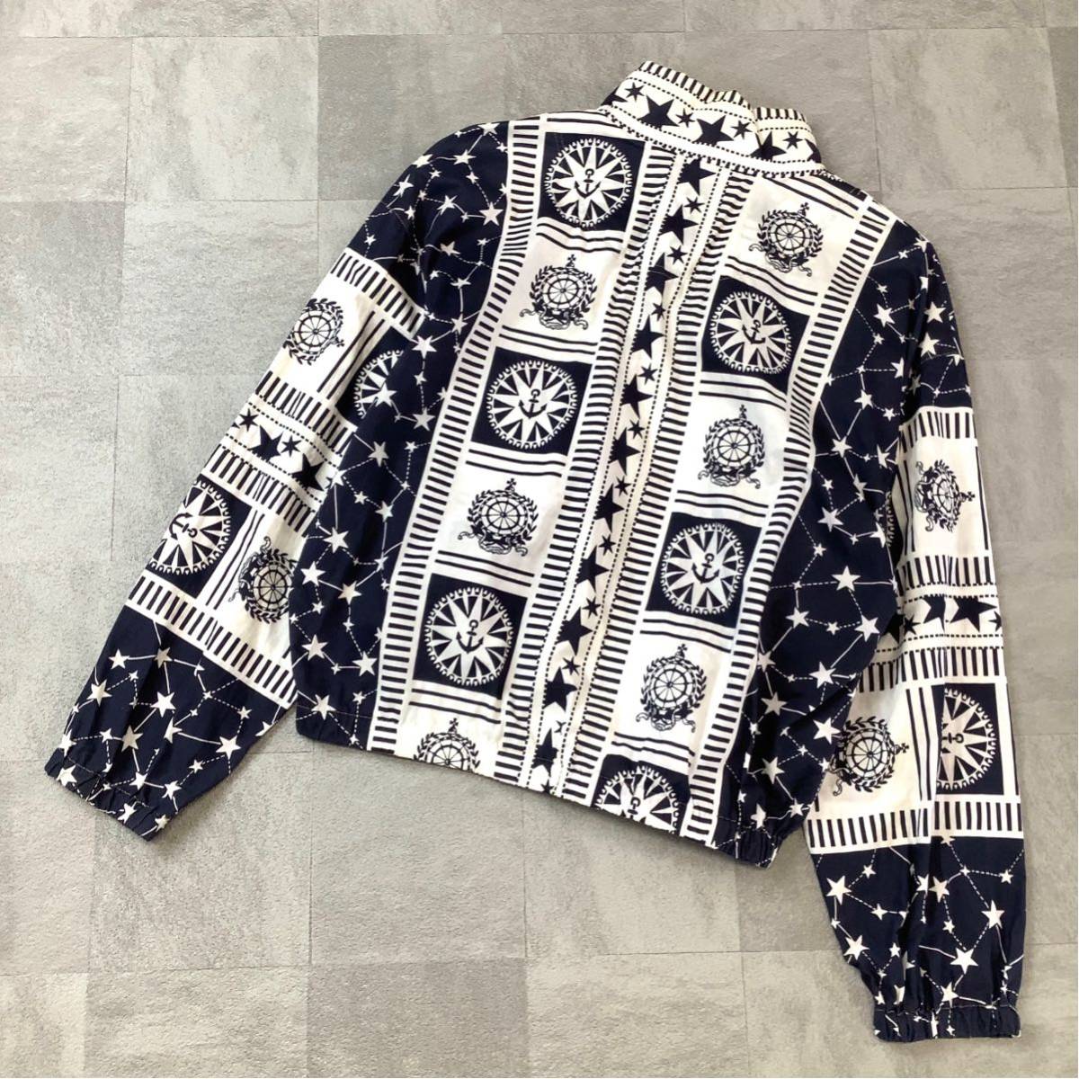 美品 90s 総柄 スカーフ柄 VICE DE POR 星 イカリ柄 スイングトップ ブルゾンジャケット レディース フリー ネイビー ホワイト 日本製