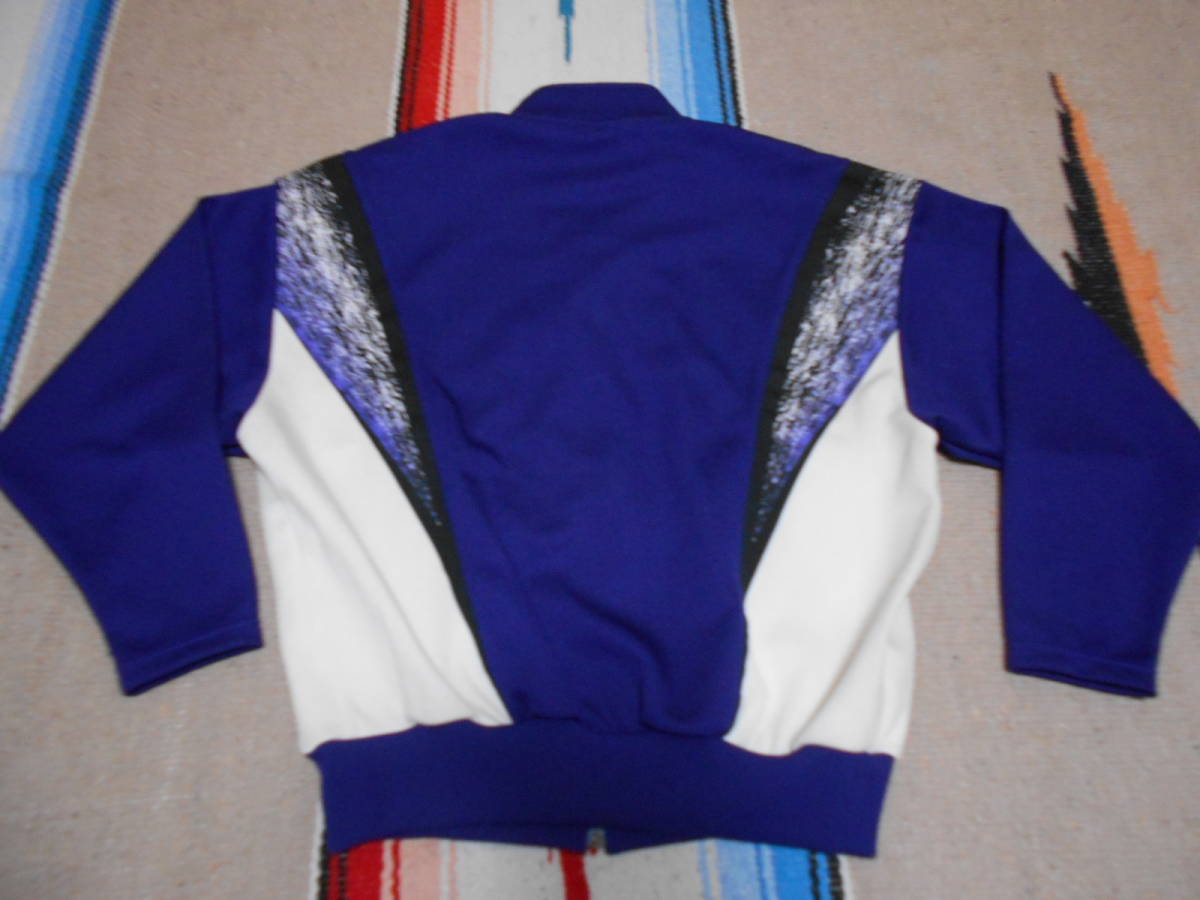 1990S' SUPER STAR ビンテージ特有の厚みの有る高品質ジャージー素材感、ショルダー~ボディーサイドの補強も兼ねた伸縮素材縫い付けのV字デザイン、ショート丈でタイト過ぎないシルエット、リブ素材縫込みのスタンドネック、サイドポケット    等等...ビンテージオリジナルにしかないディテールに風合の良さ、EARLY1990Sのクラシックスポーツアイテム