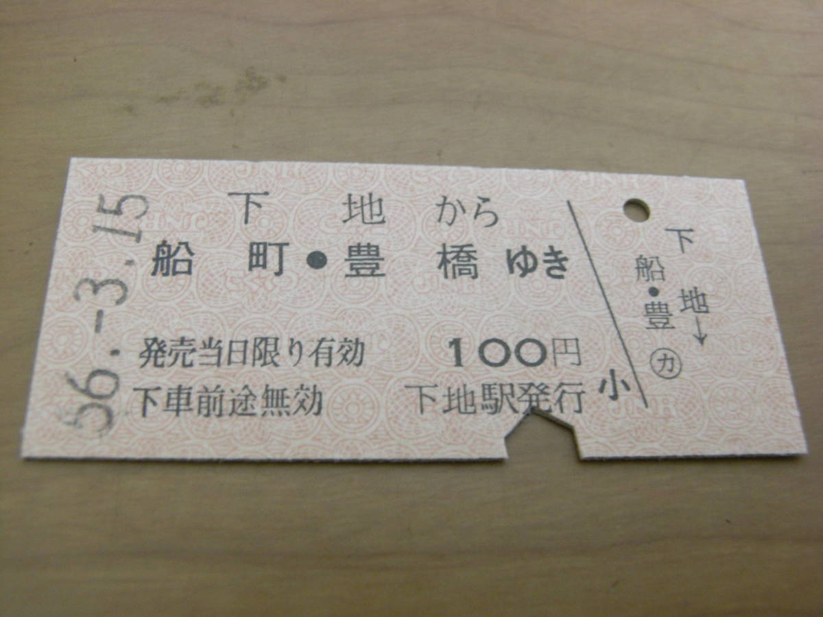 飯田線 下地から船町・豊橋ゆき 100円 昭和56年3月15日 下地駅発行