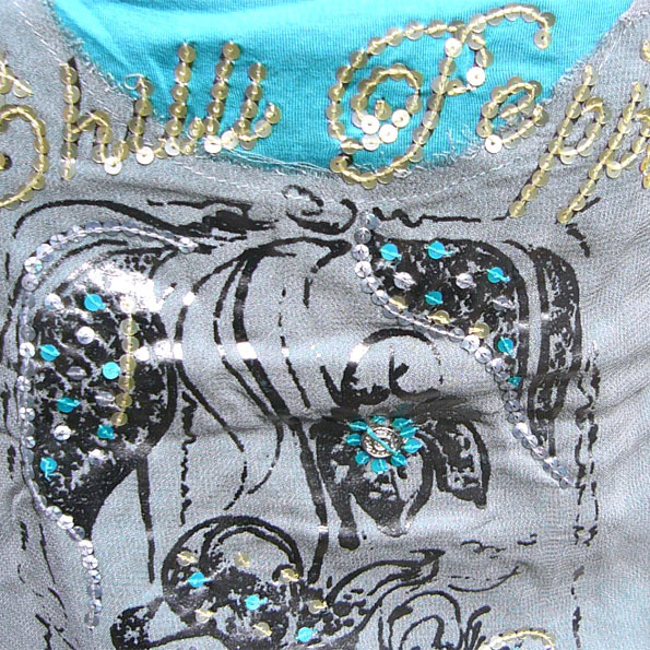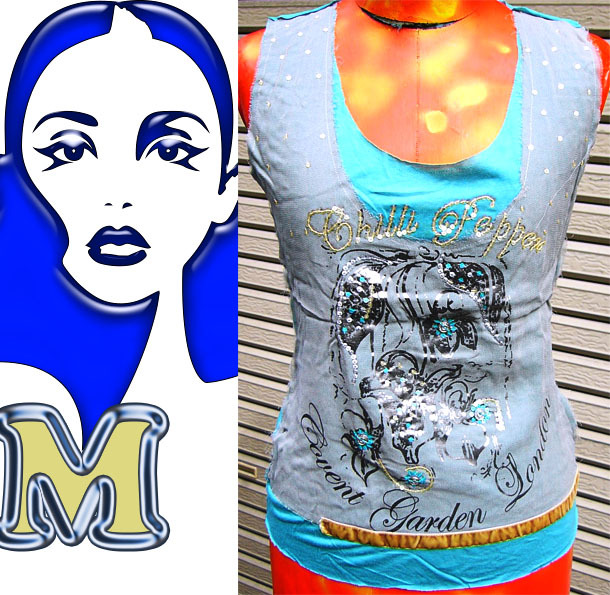 レーヨン100 前見頃に生地を貼付けたデザイン