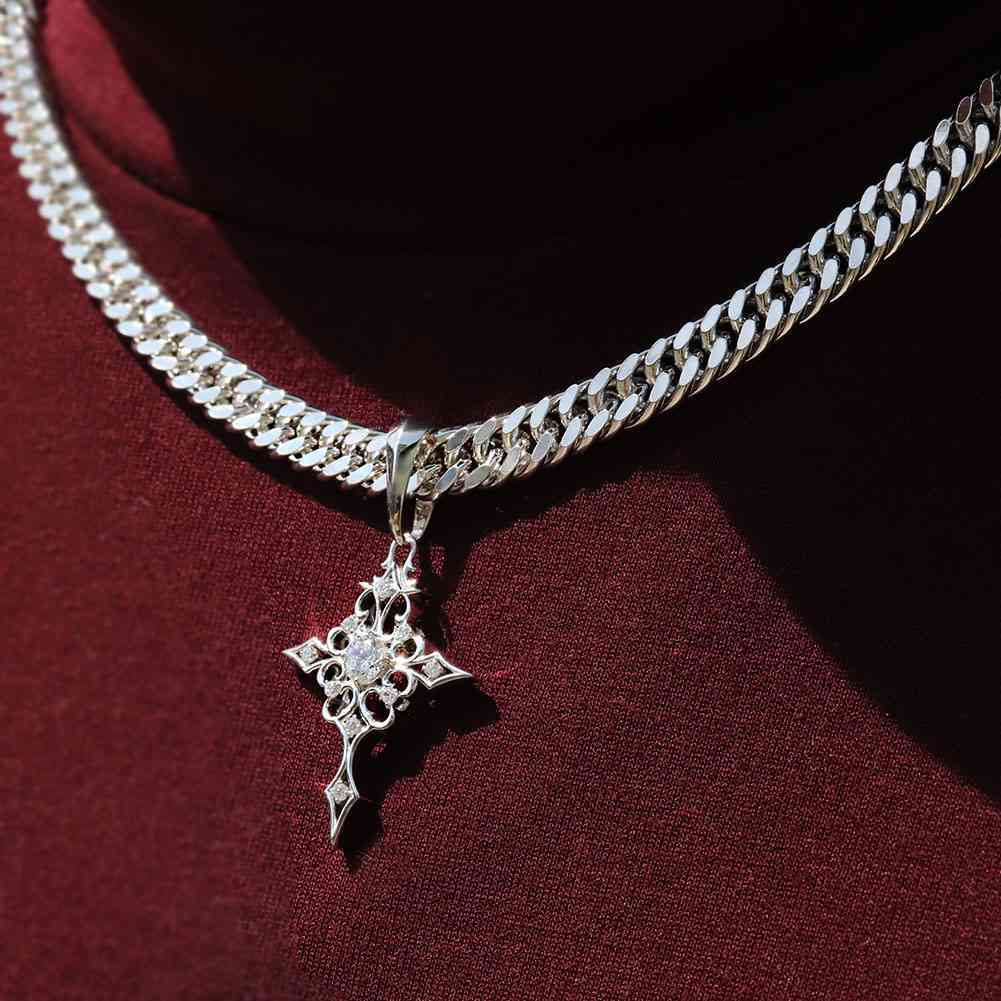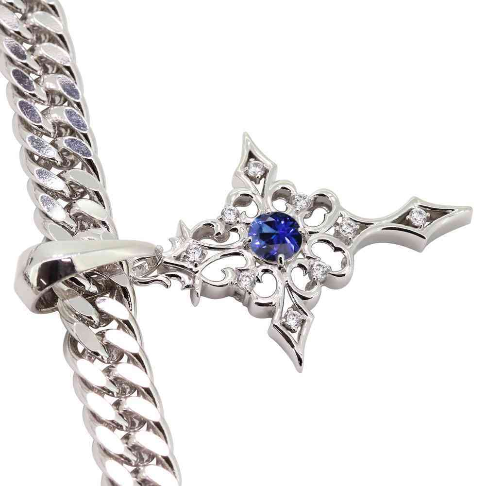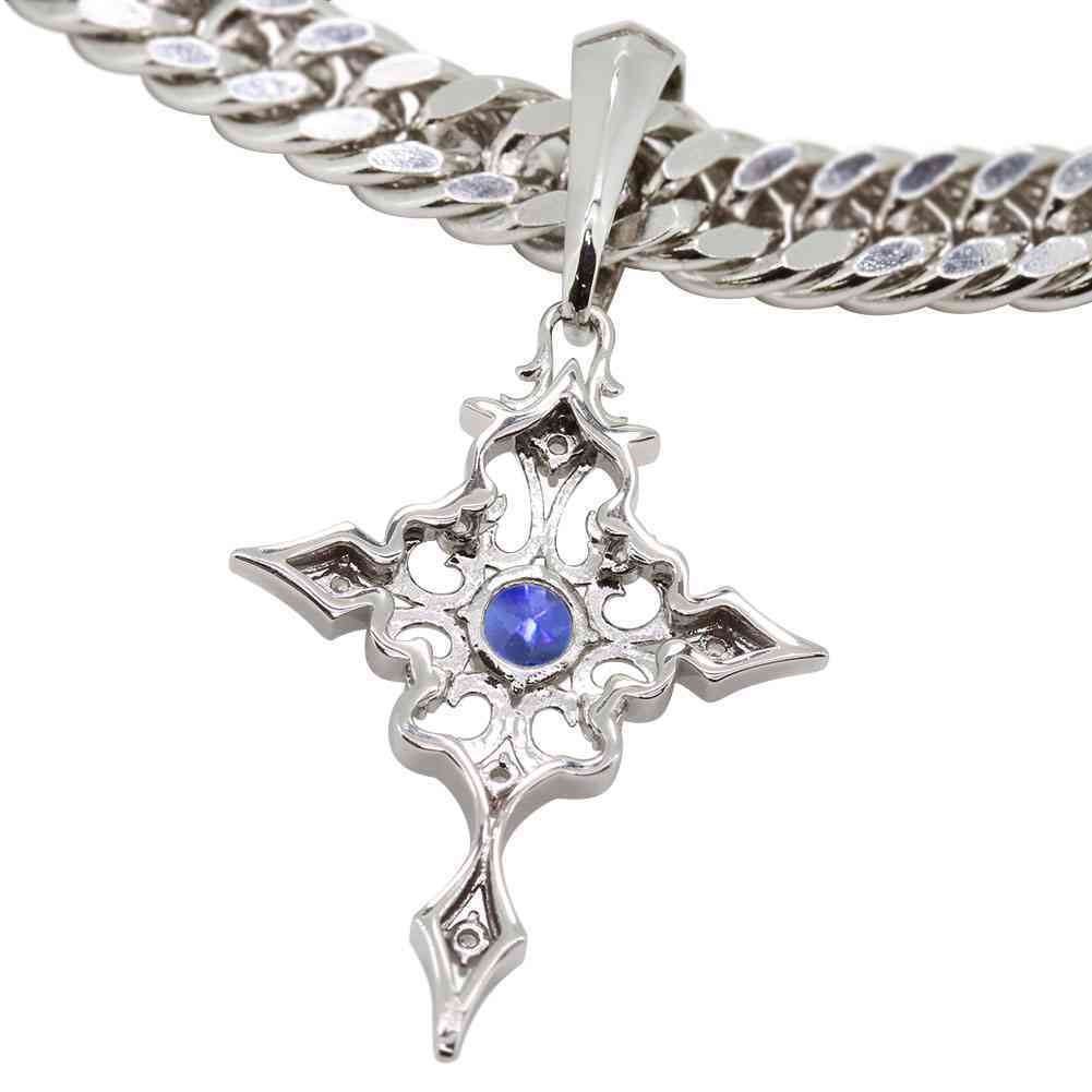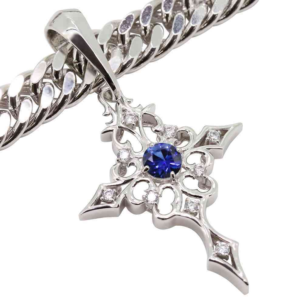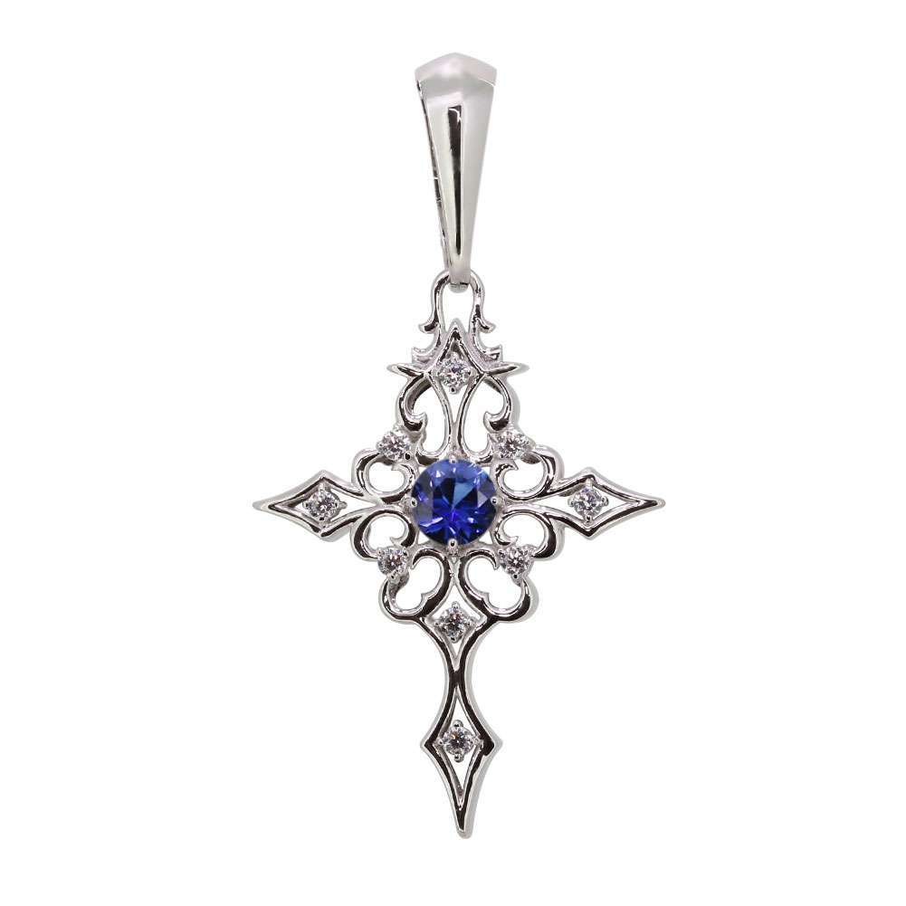9月誕生石サファイアを使用したプラチナ製の、クロス(十字架)モチーフの、メンズペンダントヘッドです。