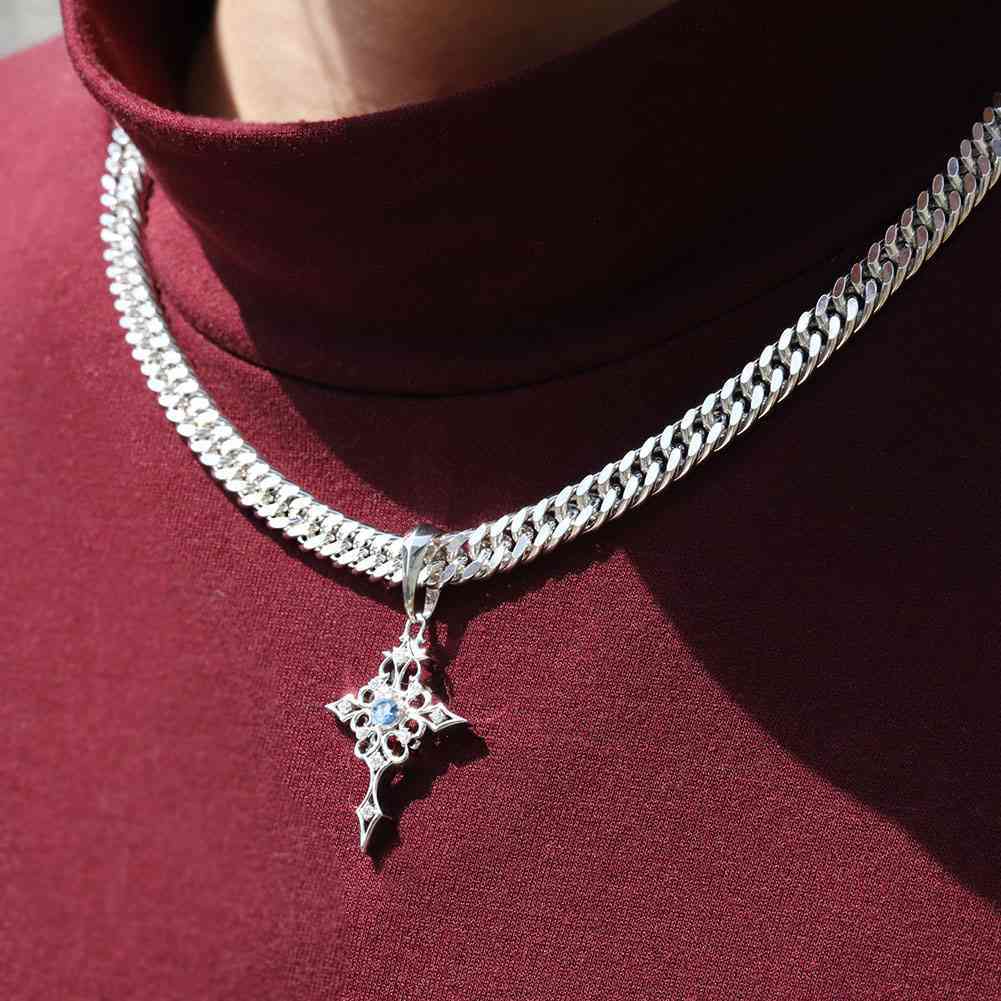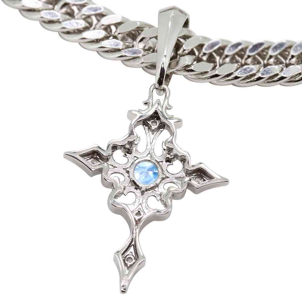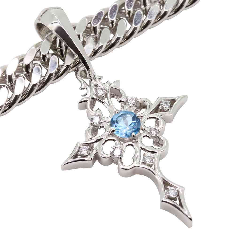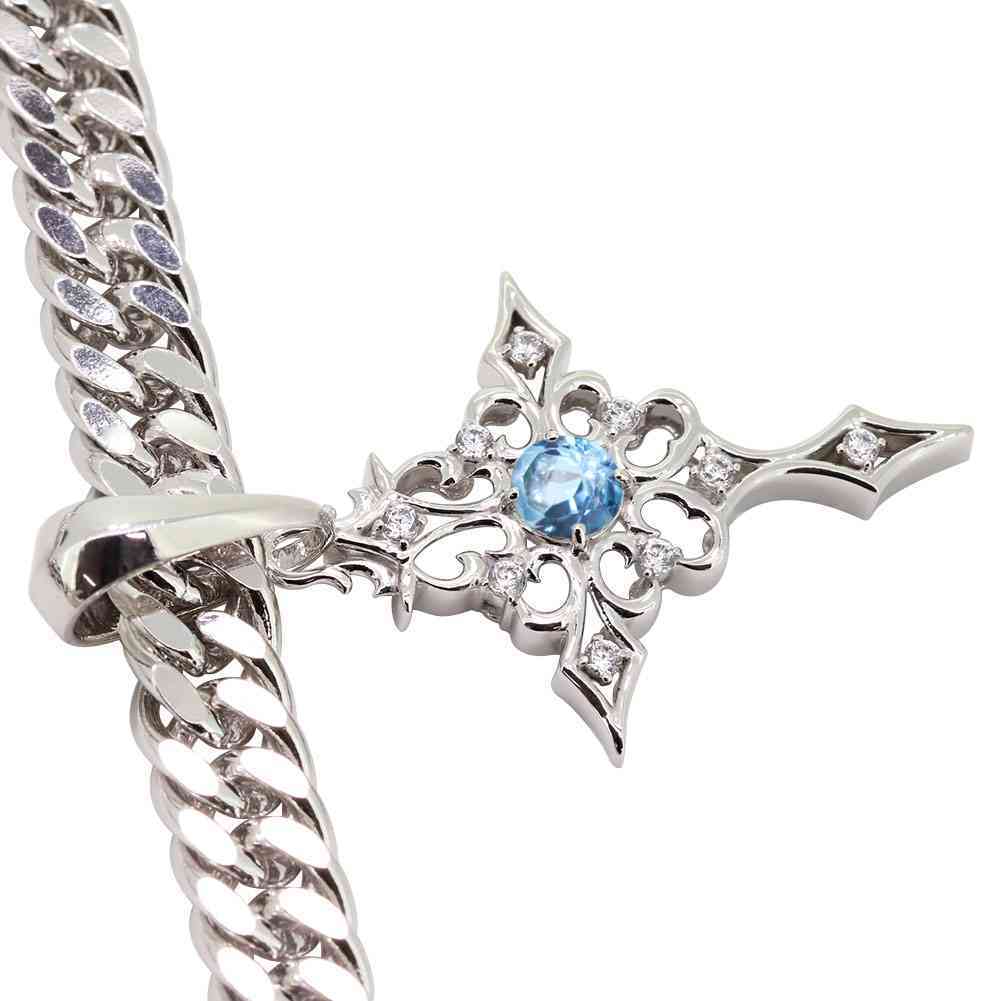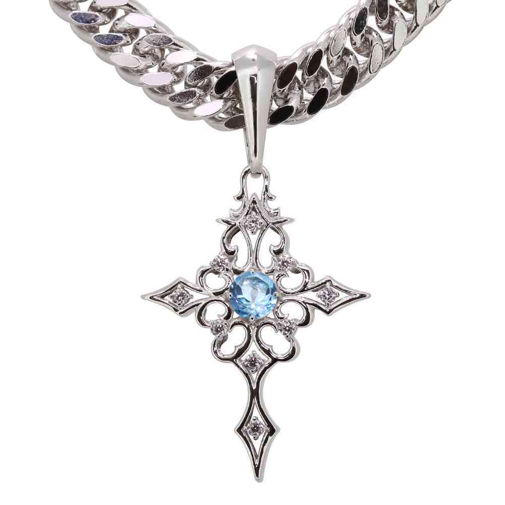11月誕生石ブルートパーズを使用した18金製の、クロス(十字架)モチーフの、メンズネックレス(ペンダント)です。